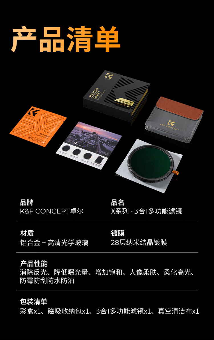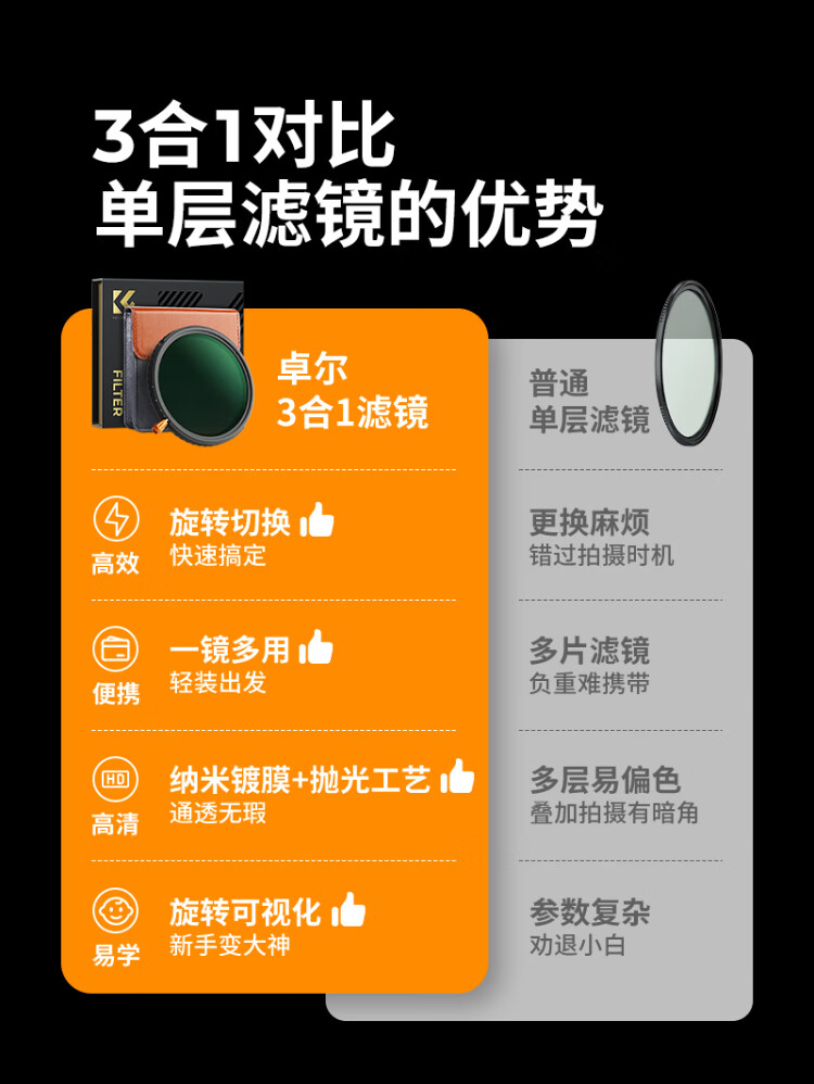 Zhuoer three-in-one filter 67mm 28-layer coating adjustable light reduction filter ND2-32 variable nd filter cpl polarizer suitable for vivo x200 Canon Sony Kang black soft filter