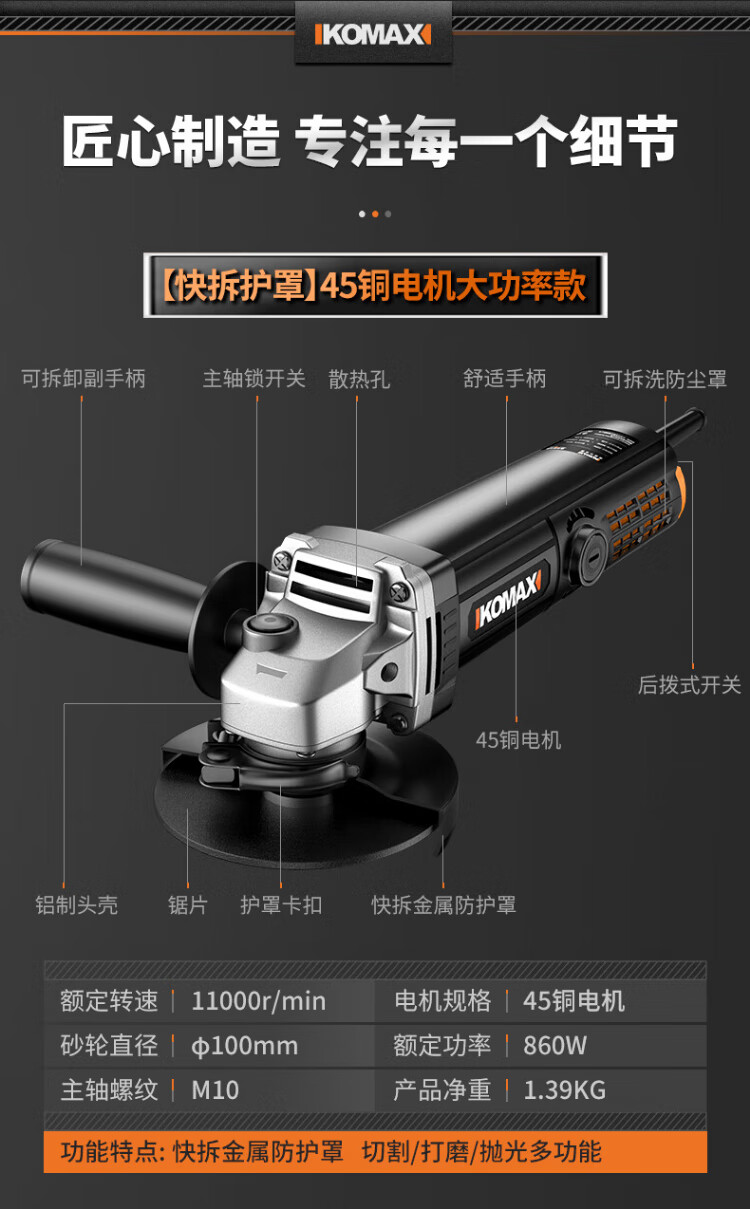 Komax angle grinder high-power grinder hand grinder grinder polishing machine small handheld cutting machine household hand grinding wheel