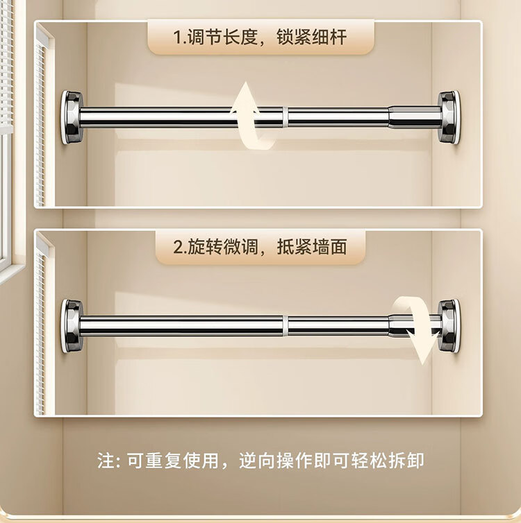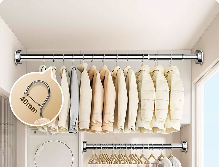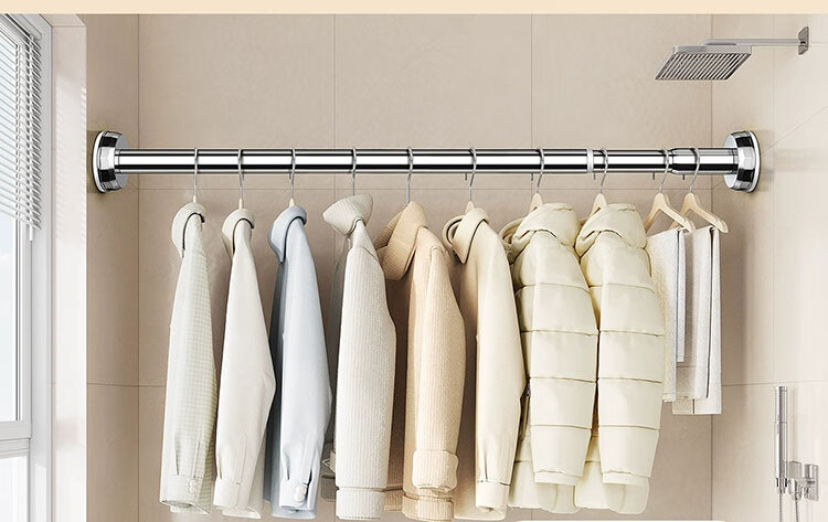Future-style telescopic rod clothes drying rod no punching wardrobe support rod bathroom nail-free support frame hanging shower curtain rod 150-220
