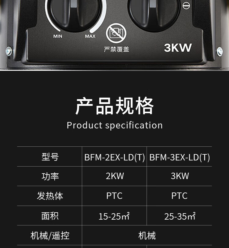 Baidun explosion-proof floor-standing air heater rapid heating copper motor low-power heater 220v BFM-3EX-LD(T)