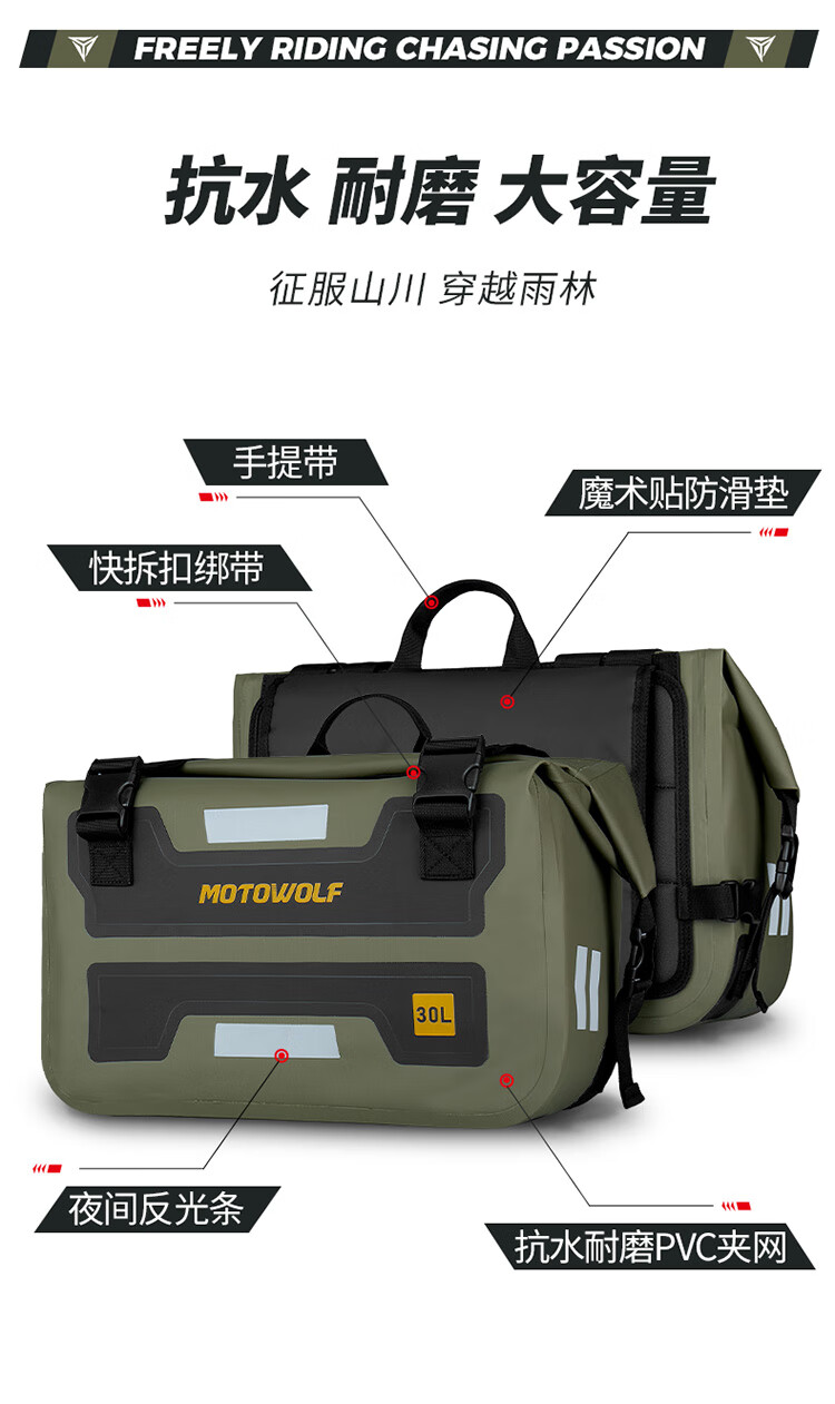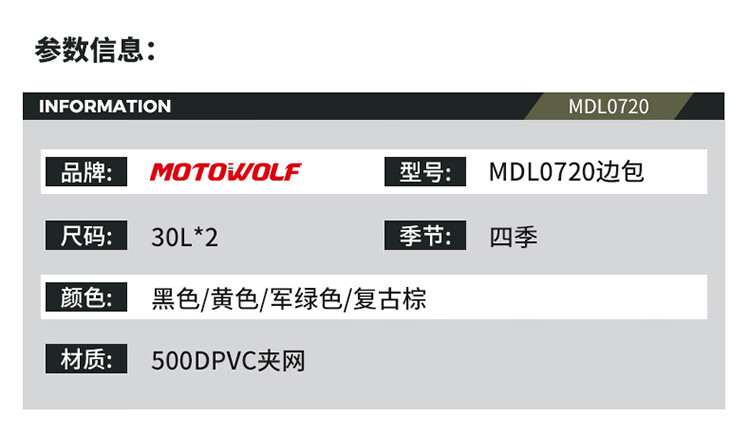 MOTOWOLF motorcycle side bag, rear seat bag, waterproof bag, quick release luggage bag, rider bag, rear seat motorcycle riding bag, equipment