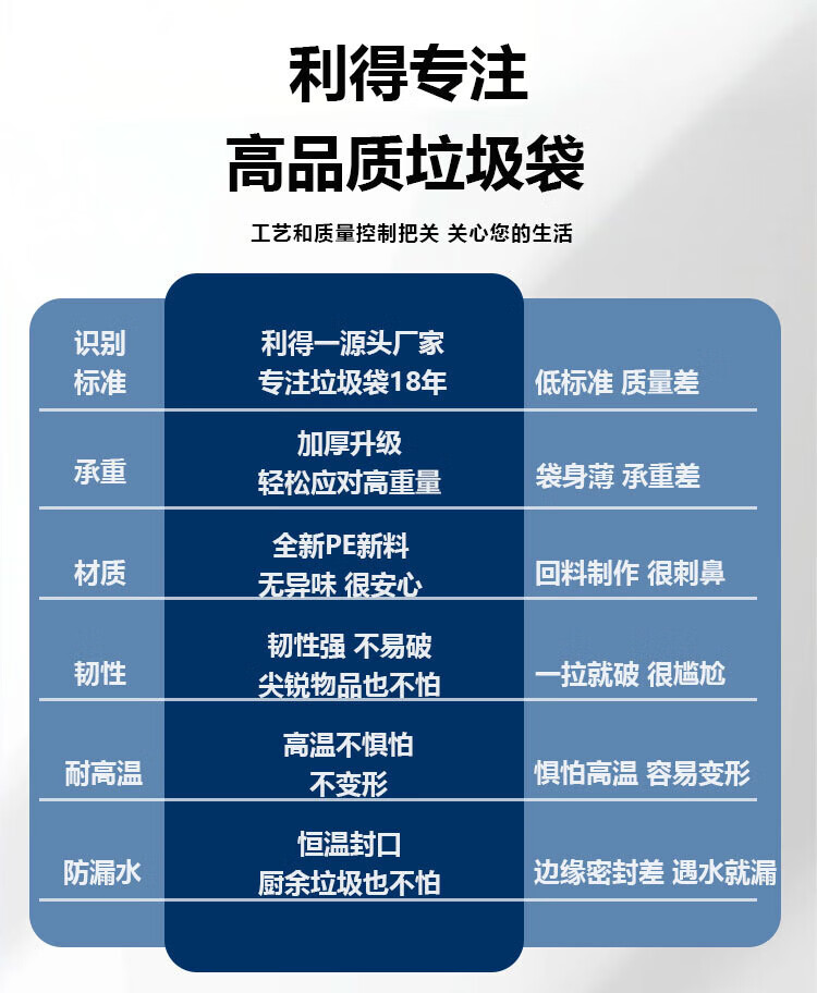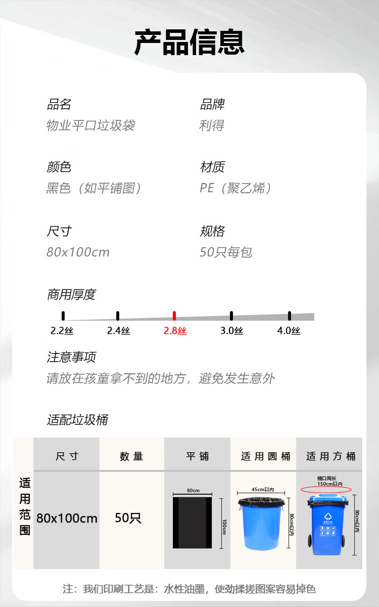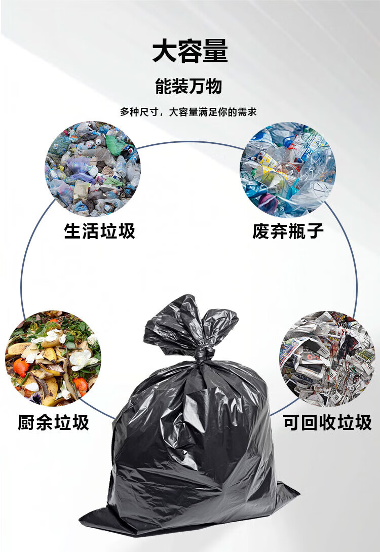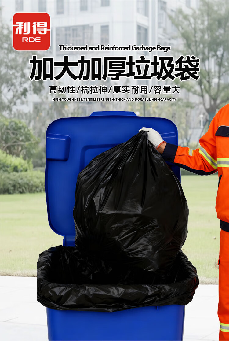 Lide Property Garbage Bags Large Thick 2.8 Silk Black Flat Mouth 80*100cm*50 pieces Trash Can Classification