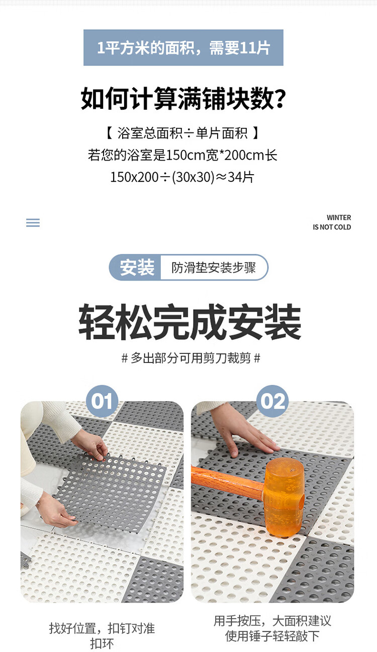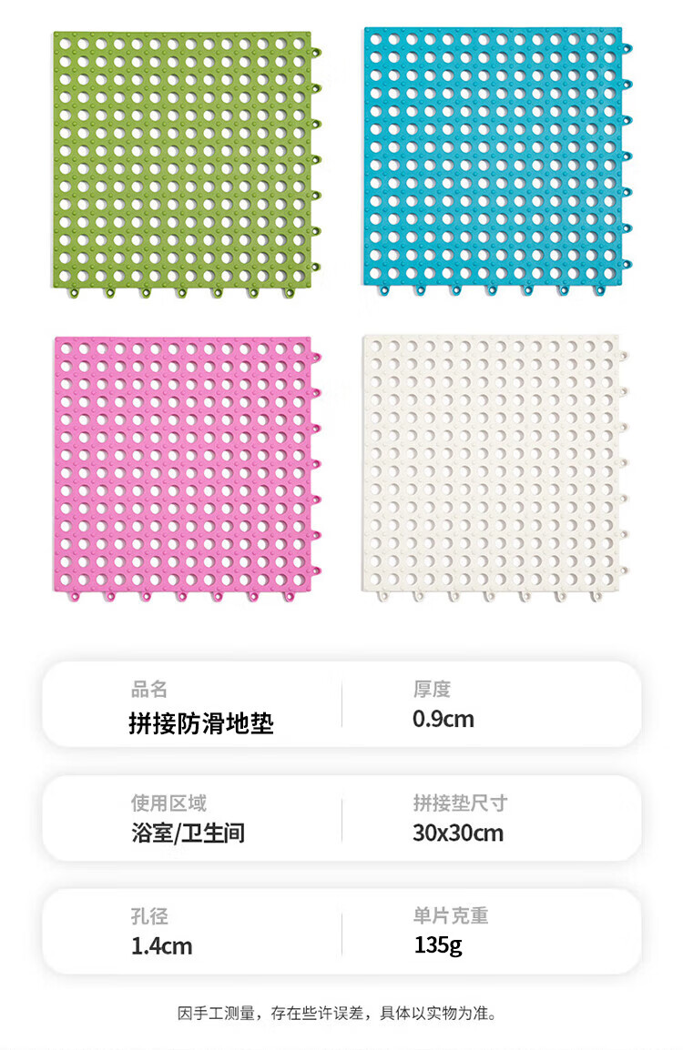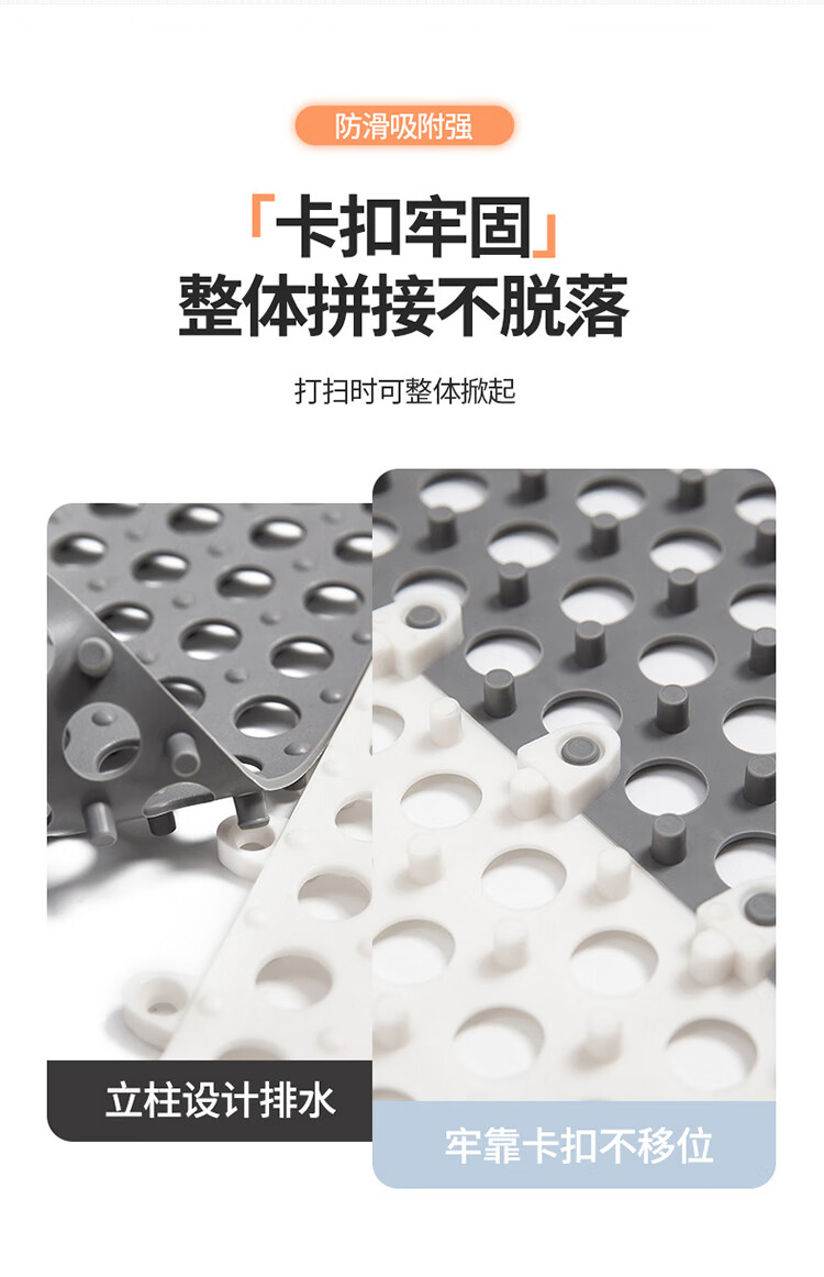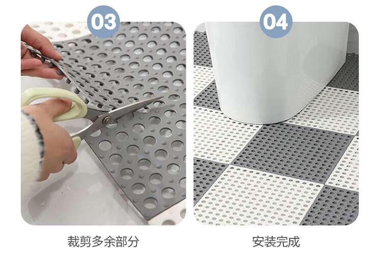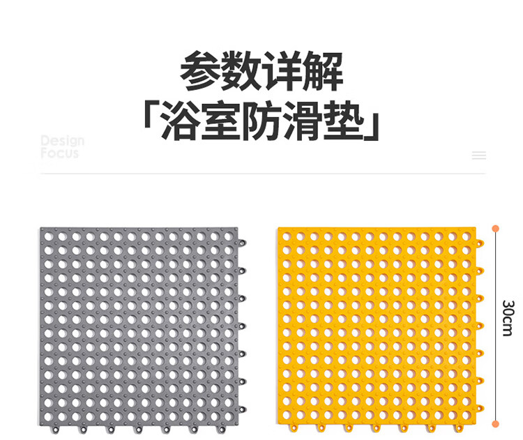 Masifu PVC bathroom waterproof splicing floor mat carpet bathroom toilet swimming pool anti-slip mat gray 300*300*9mm (4 pieces/pack)