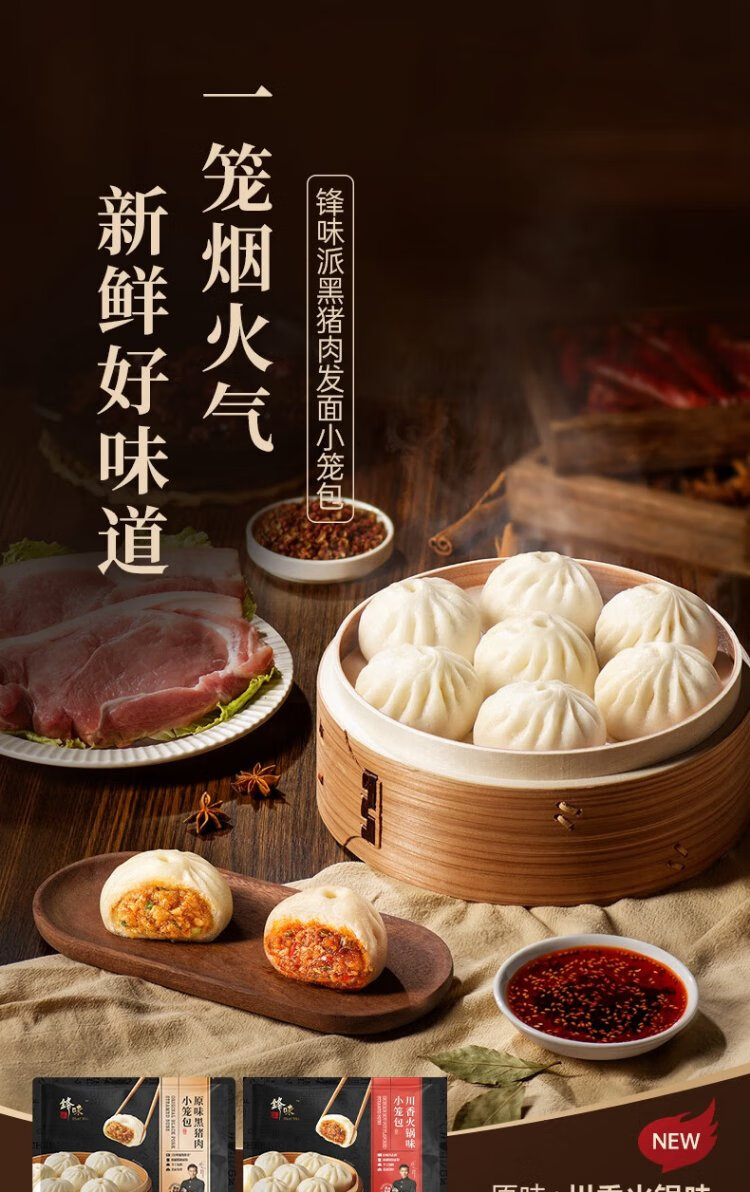 Fengwei Pai Black Pork Original Xiao Long Bao 1200g/48 pieces Shengzhou Old Noodles Handmade Steamed Buns Children's Lazy Breakfast and Late Night Supper