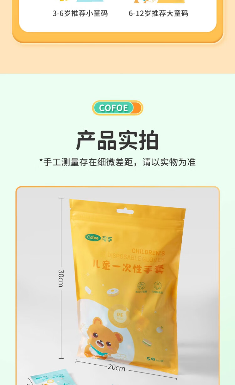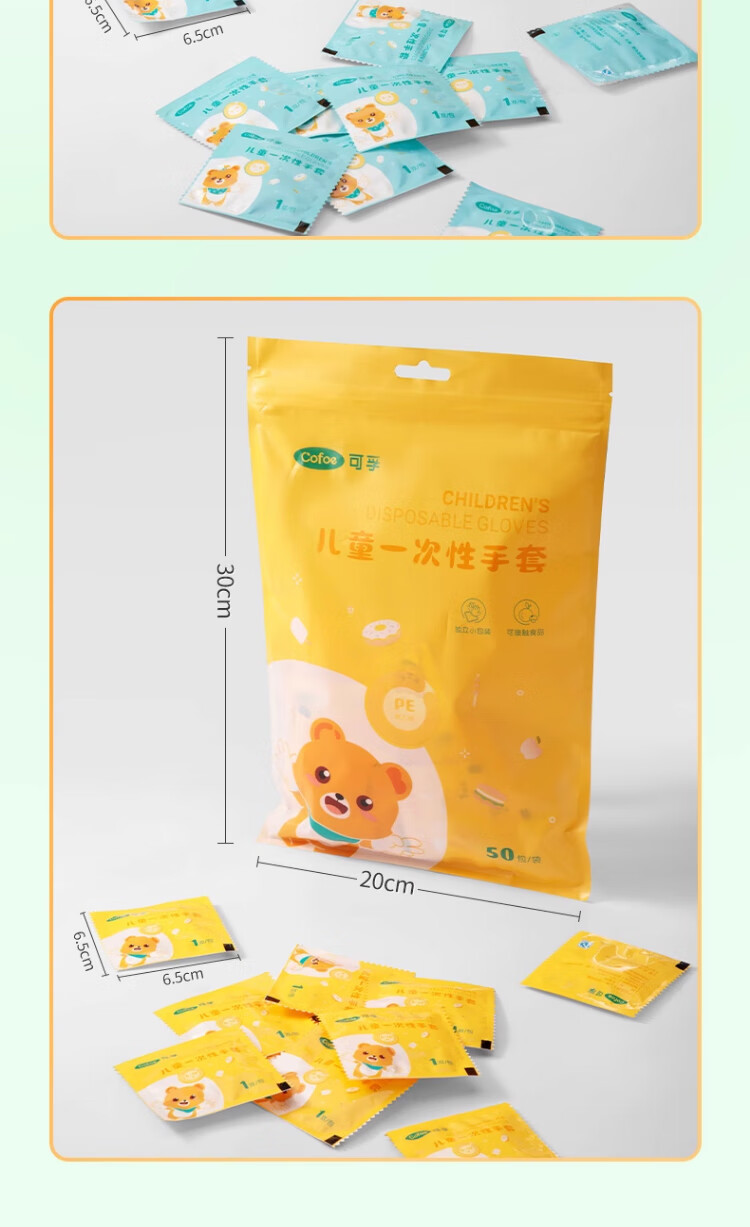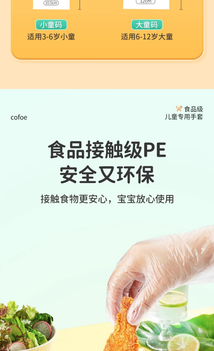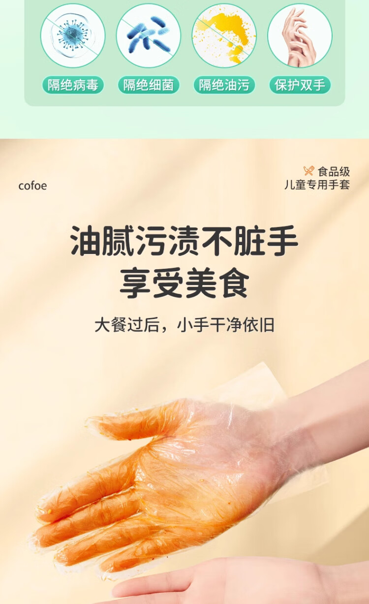 Corfu children's disposable gloves food grade children's special PE plastic thickened protective children's code 100 pieces