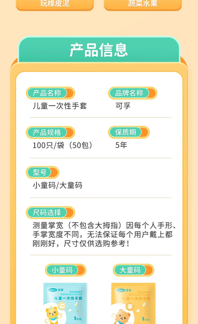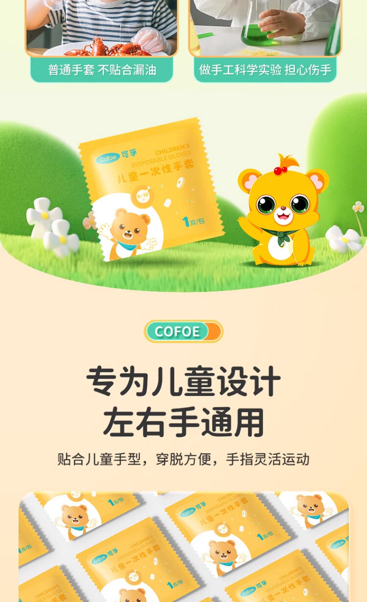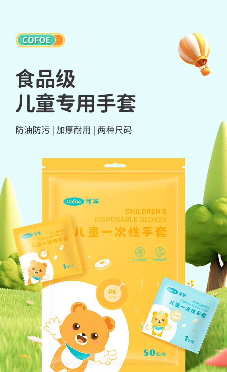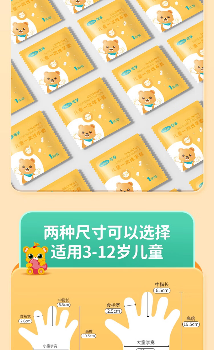 Corfu children's disposable gloves food grade children's special PE plastic thickened protective children's code 100 pieces