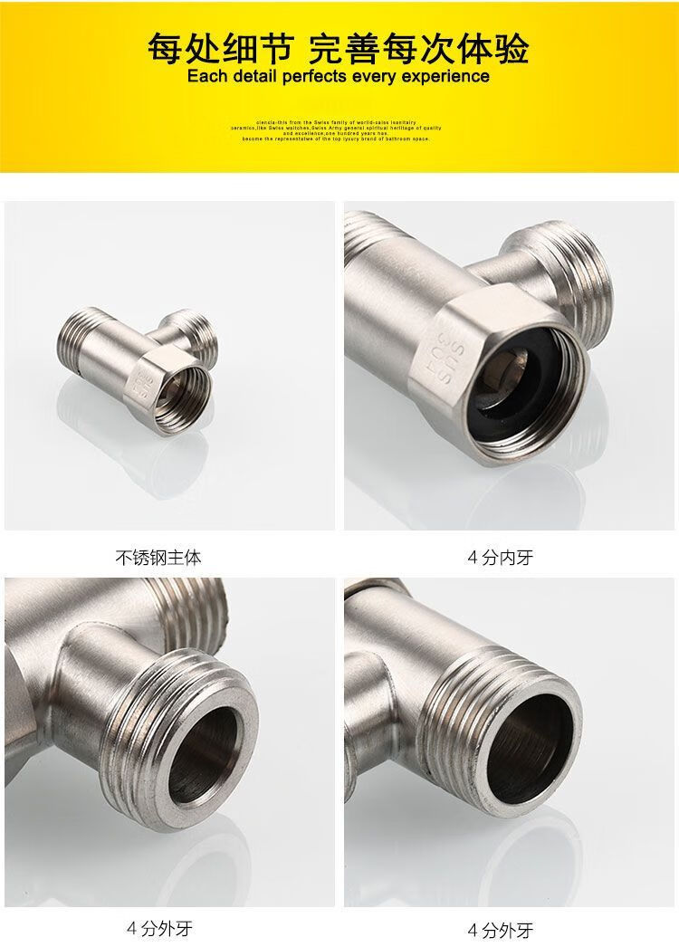 Andatong three-way joint stainless steel flexible angle valve one in two out three-way water distributor 4-point faucet adapter