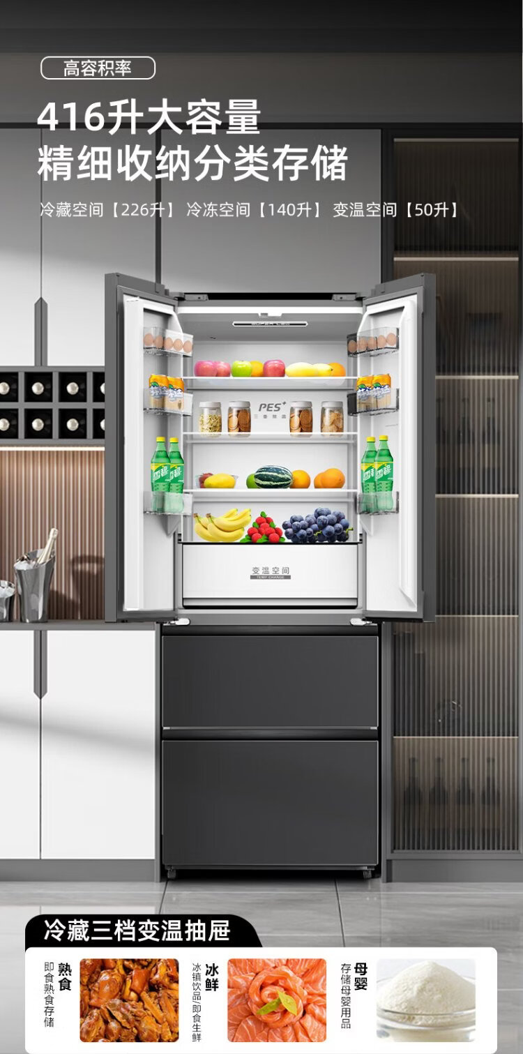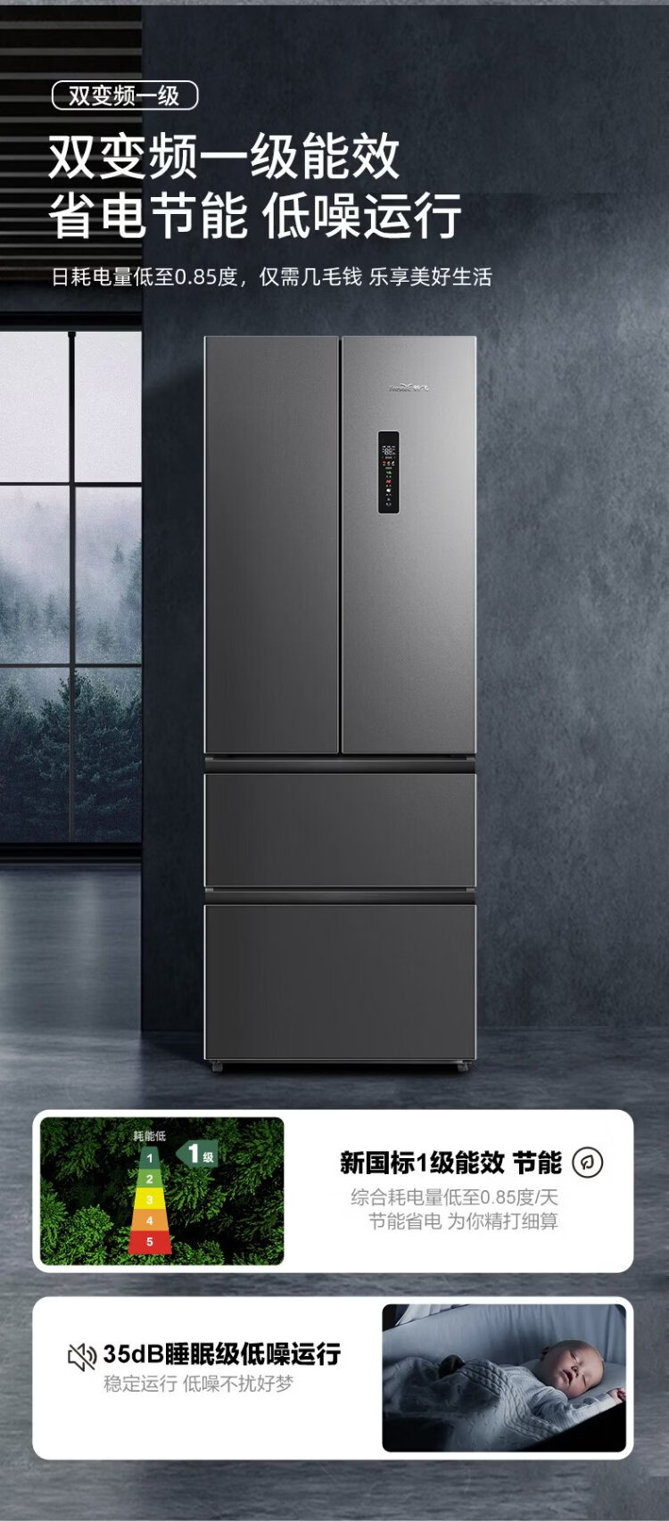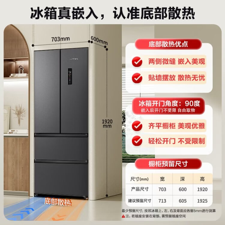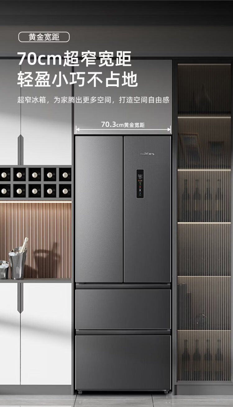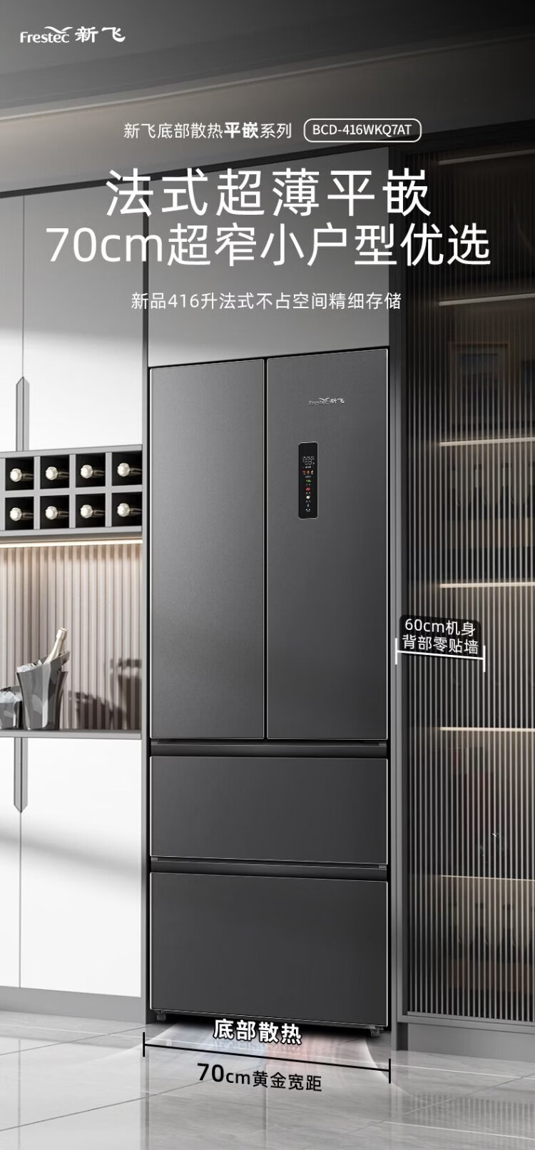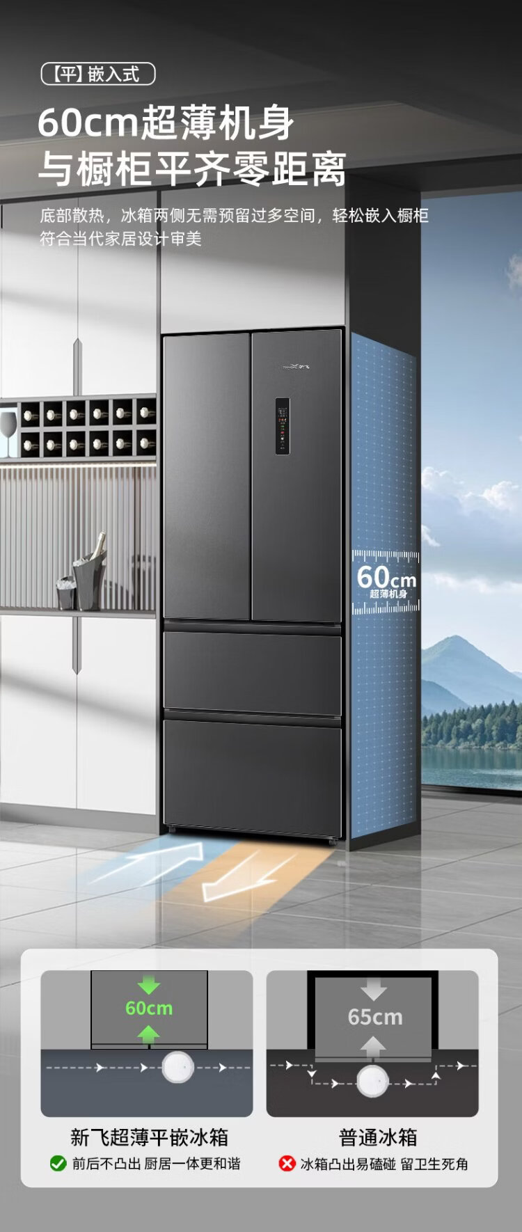 Xinfei 416L French multi-door ultra-thin flat-embedded mobile ice cabin full-space active sterilization refrigerator BCD-416WKQ7AT national subsidy