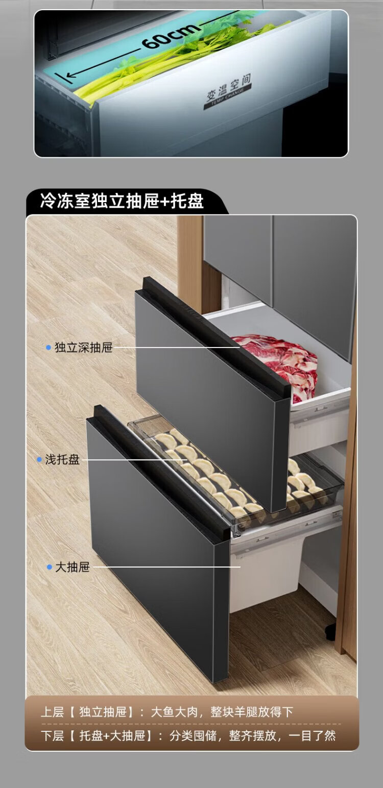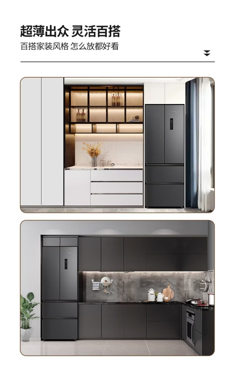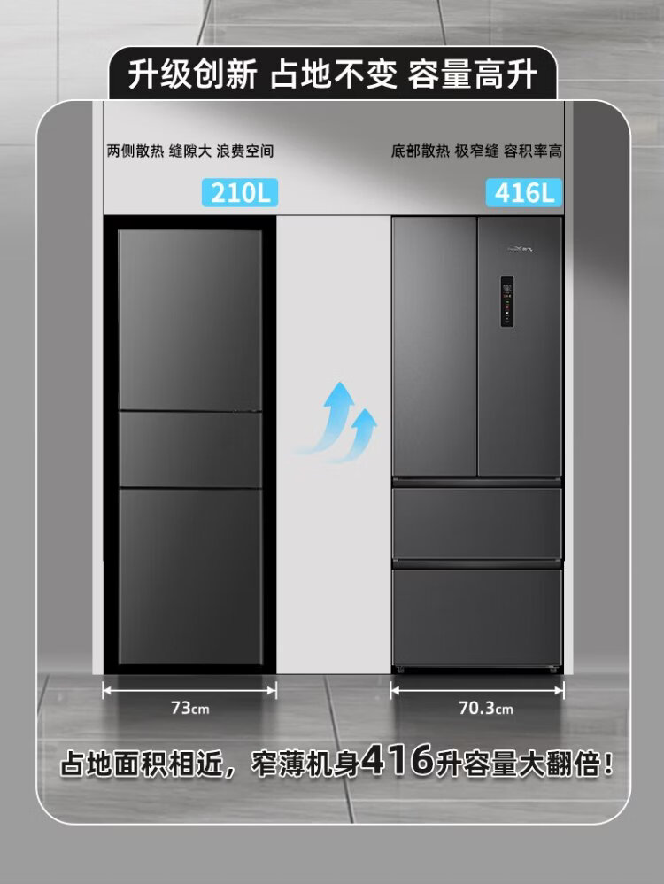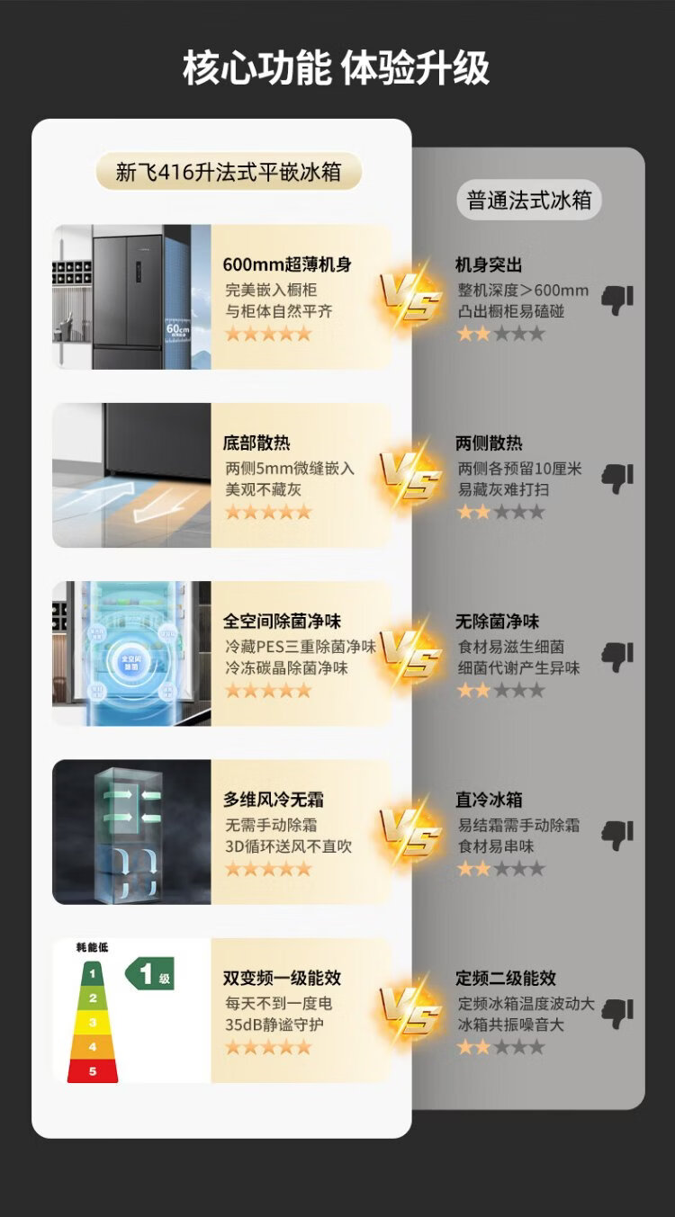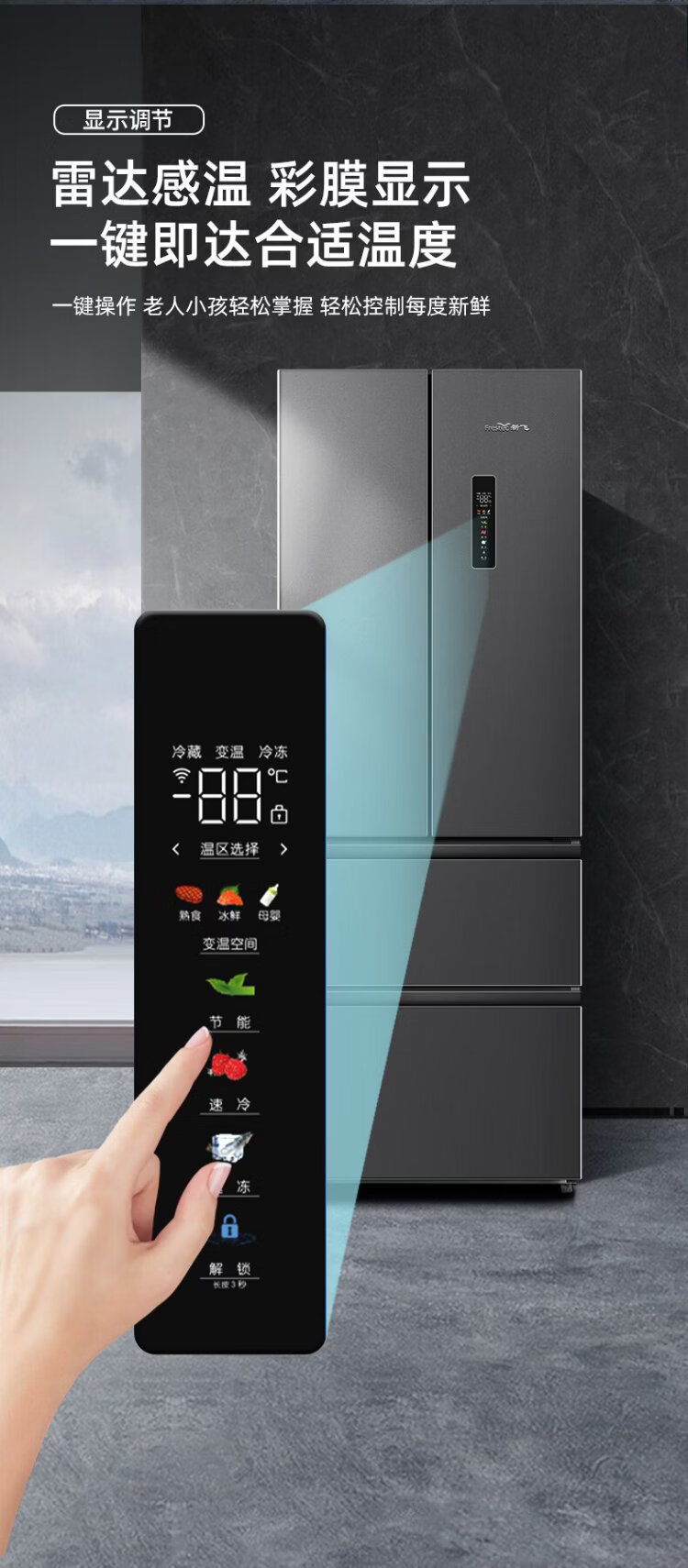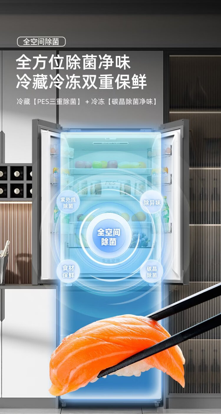Xinfei 416L French multi-door ultra-thin flat-embedded mobile ice cabin full-space active sterilization refrigerator BCD-416WKQ7AT national subsidy