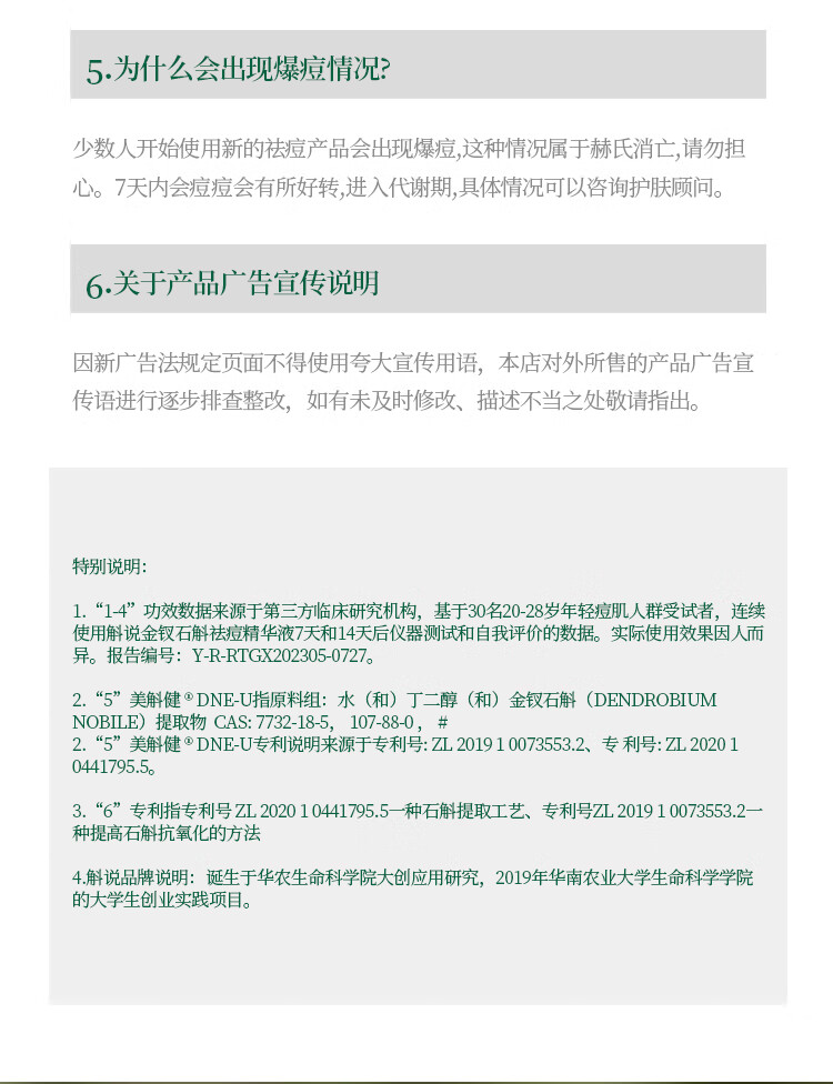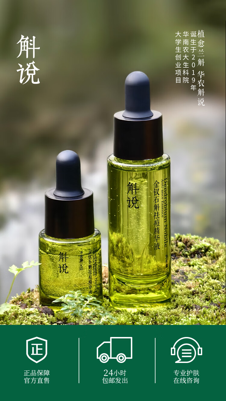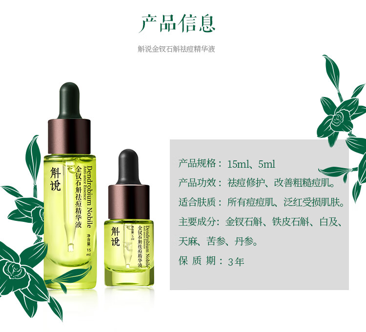 Dendrobium Shuo Acne Anti-acne Essence Small Green Bottle Dendrobium Dendrobium improves acne skin and moisturizes students for men and women 30ml