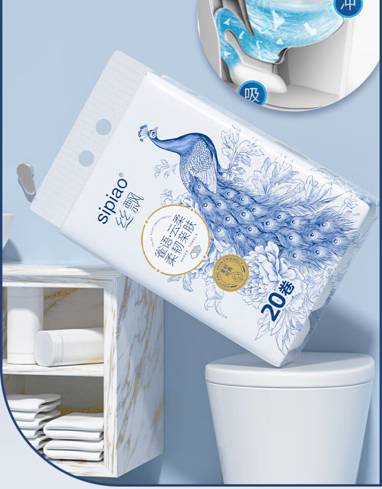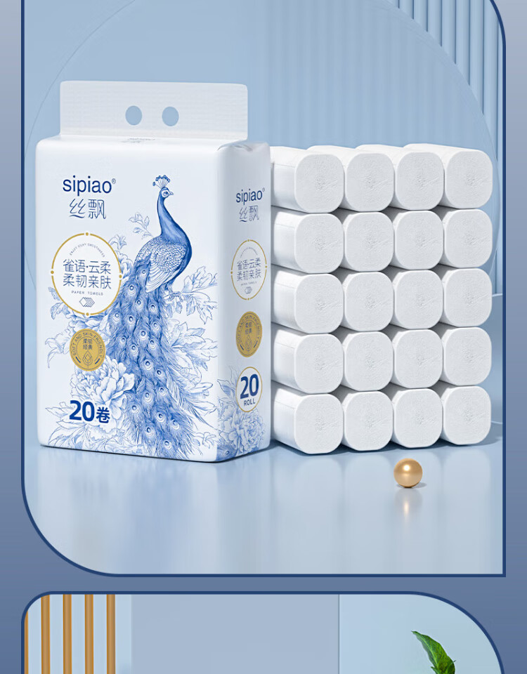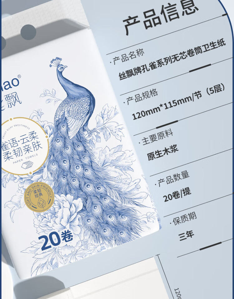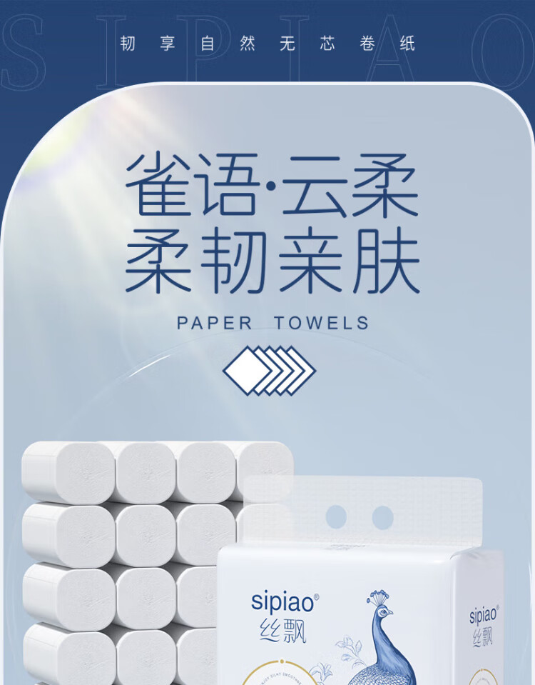 Silk roll paper thickened 5 layers 2300g 20 rolls coreless toilet paper portable large roll flexible toilet paper soft roll