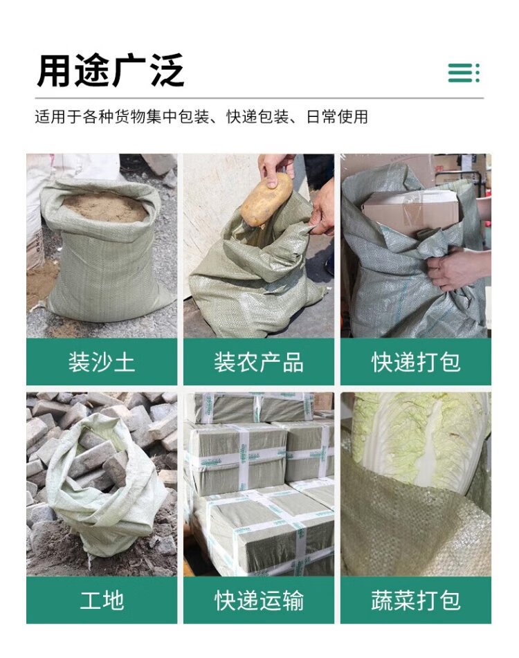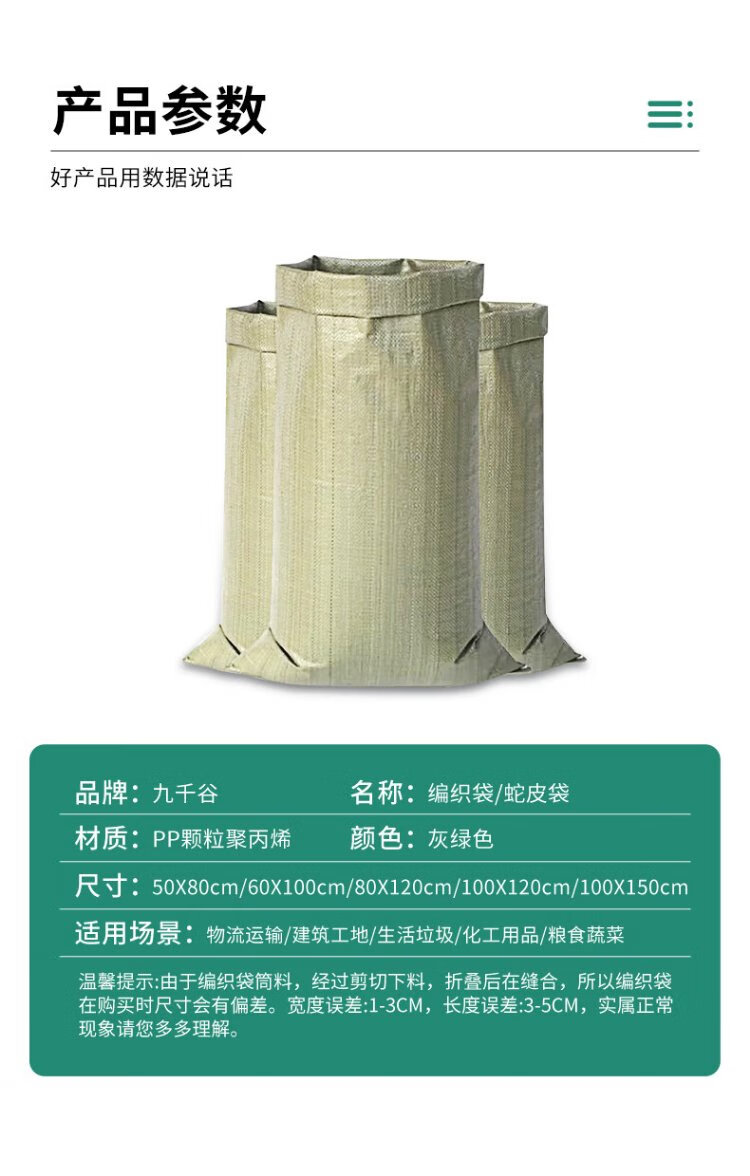 Jiuqiangu woven bag gray green sack snakeskin bag 80*120cm 10 pieces moving cement sand garbage express packing bag anti-flood and flood prevention bag