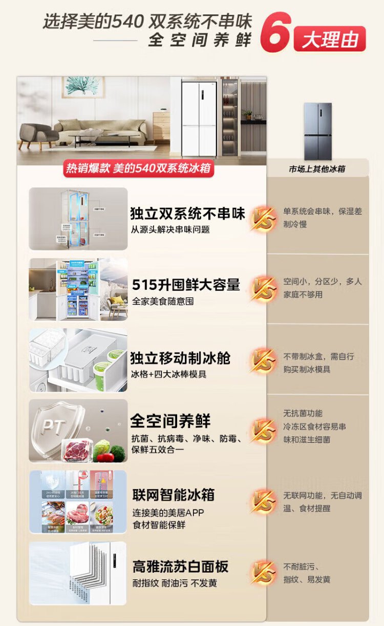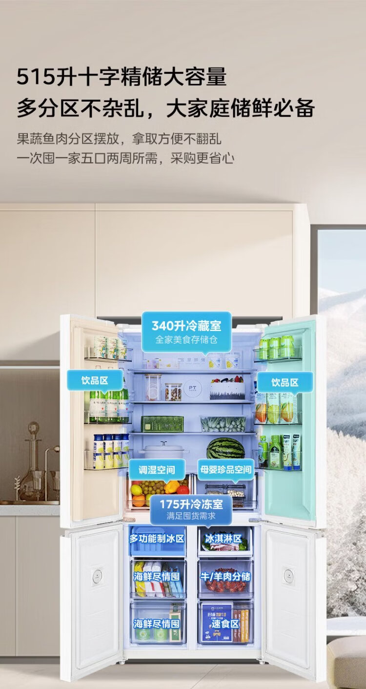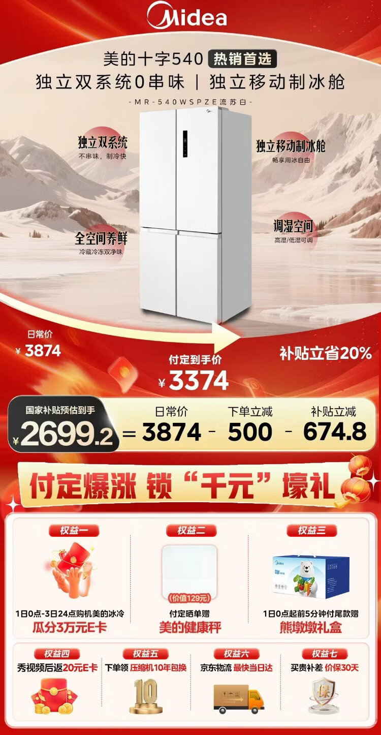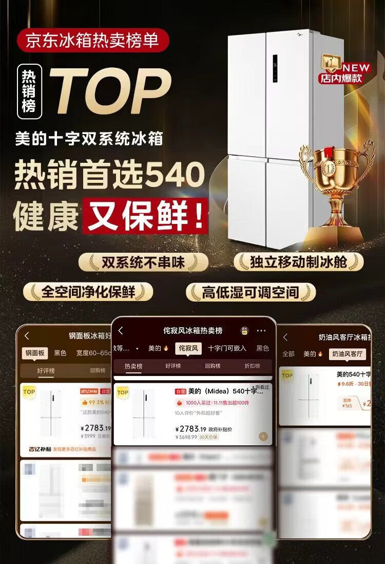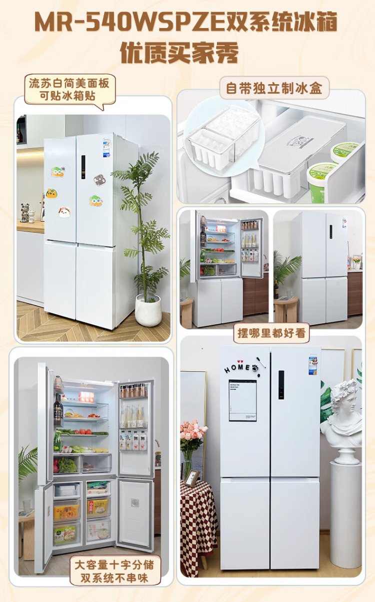 Midea 540 cross four-door first-class energy-efficiency dual-system dual-cycle large-capacity air-cooled frost-free frequency conversion independent ice-making compartment refrigerator MR-540WSPZE renewal subsidy
