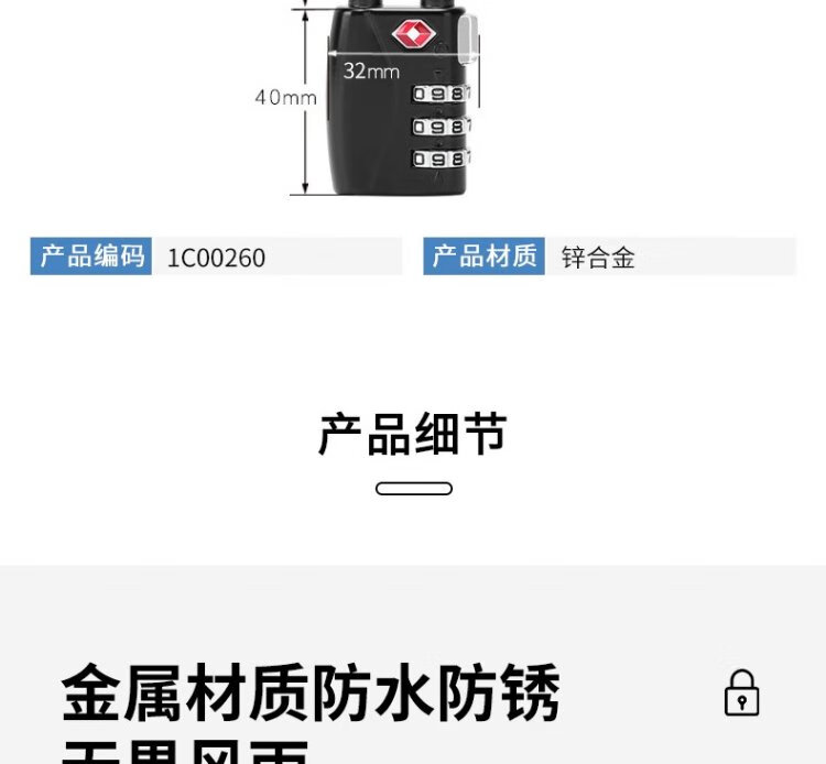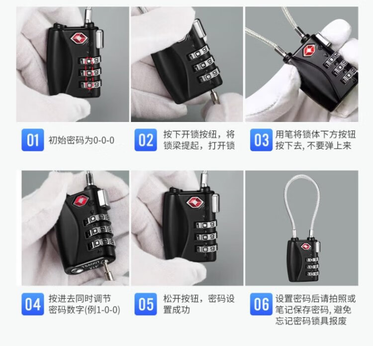 Ansairui TAS password lock padlock overseas luggage lock cabinet lock steel wire soft lock customs luggage backpack lock 32x100mm black 1C00260
