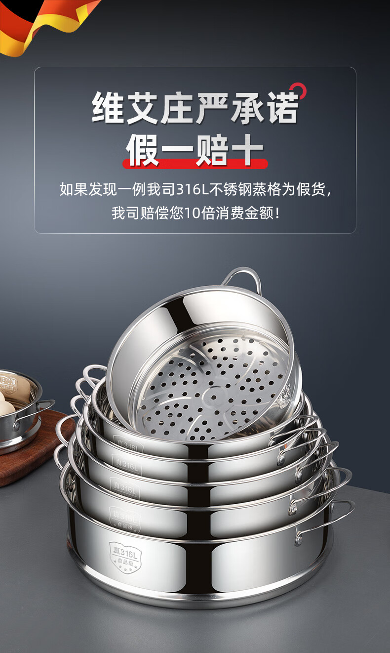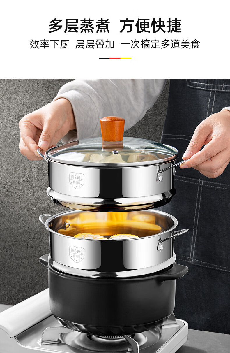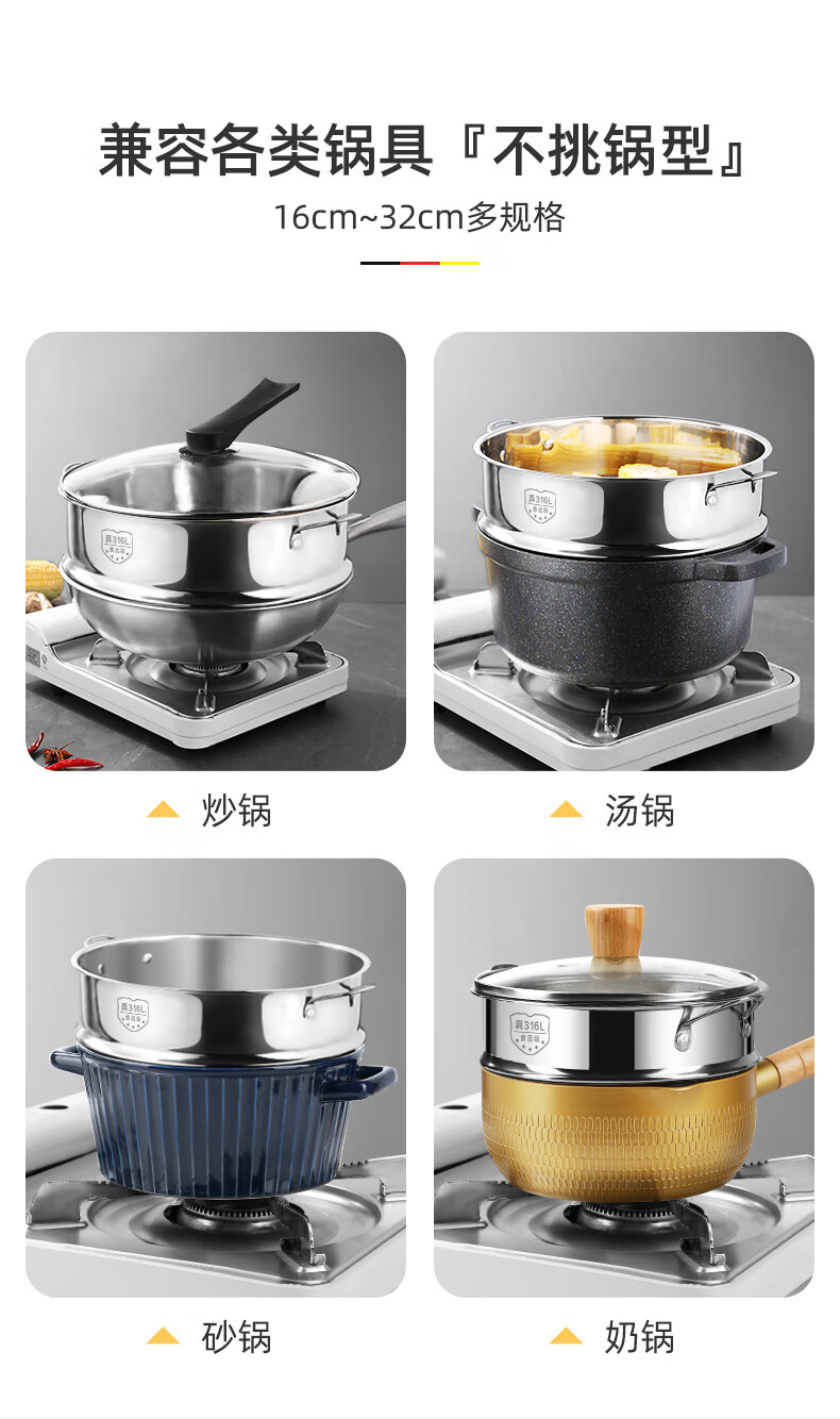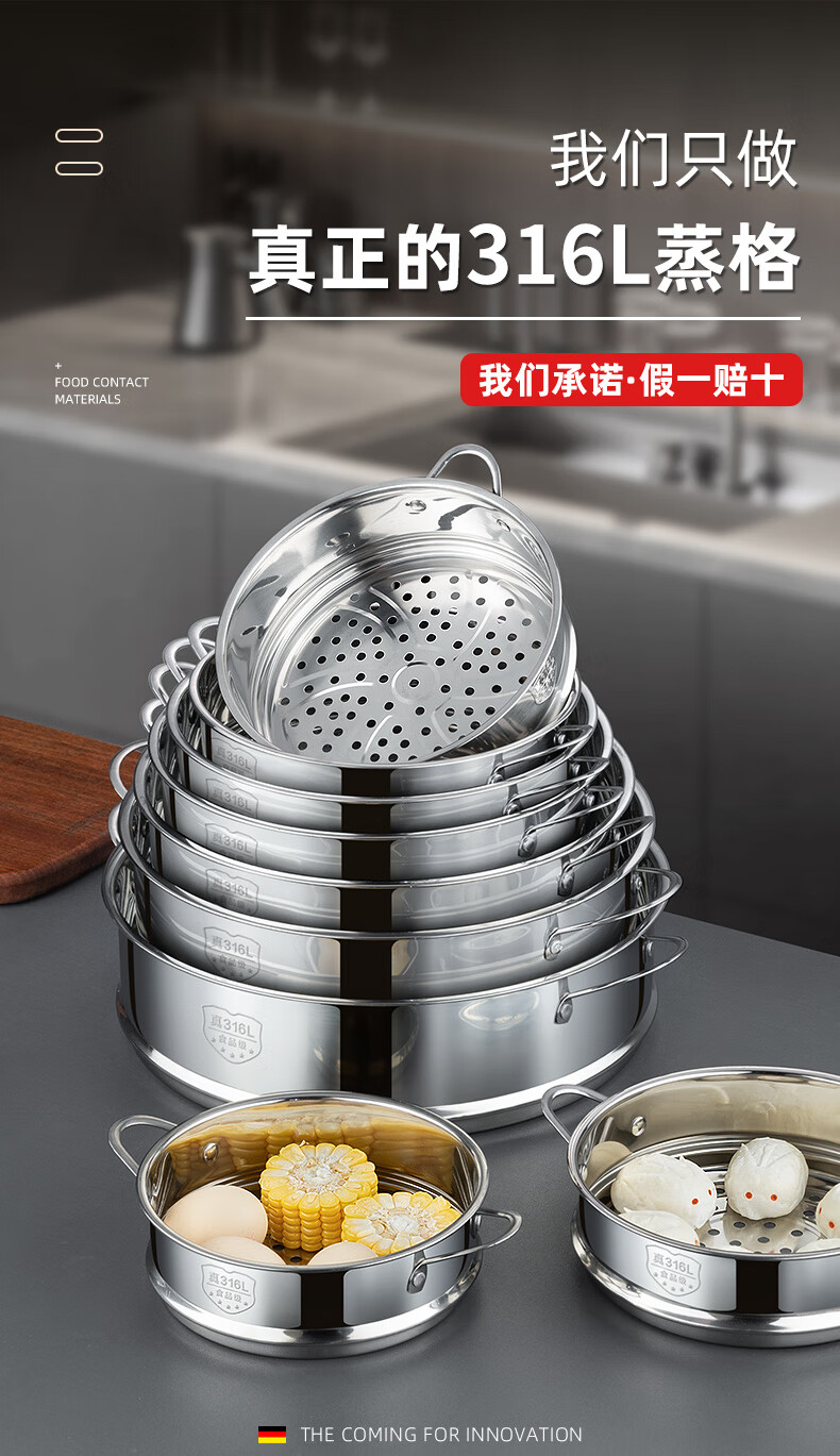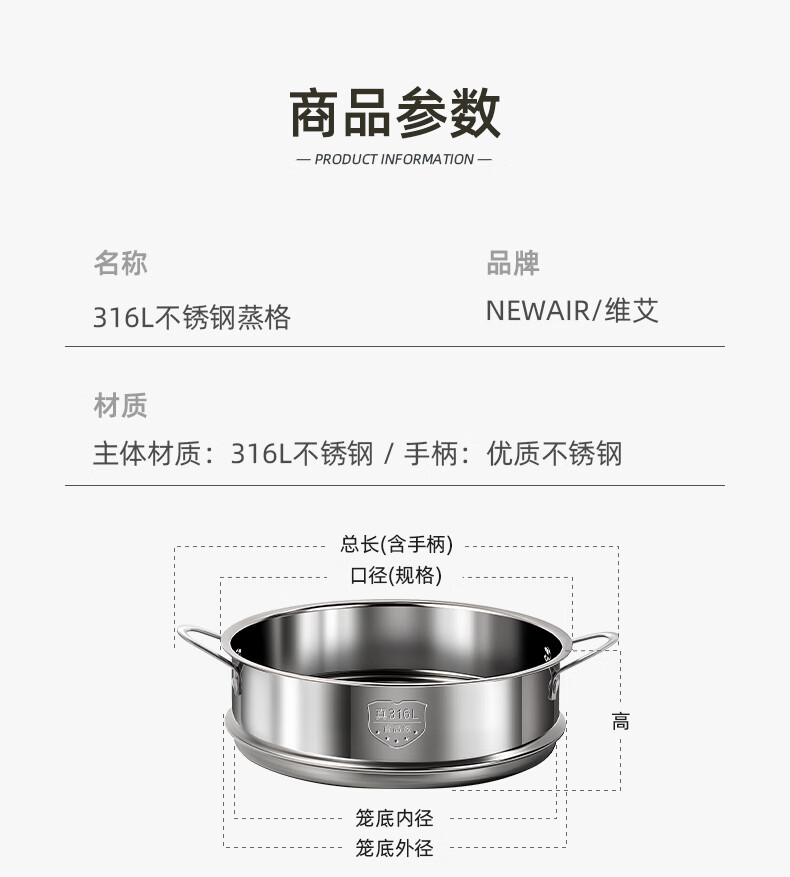Newair steamer steamer 316 stainless steel steamer rack steamer food grade steaming tray household steamer compartment grate steaming sheet 32CM