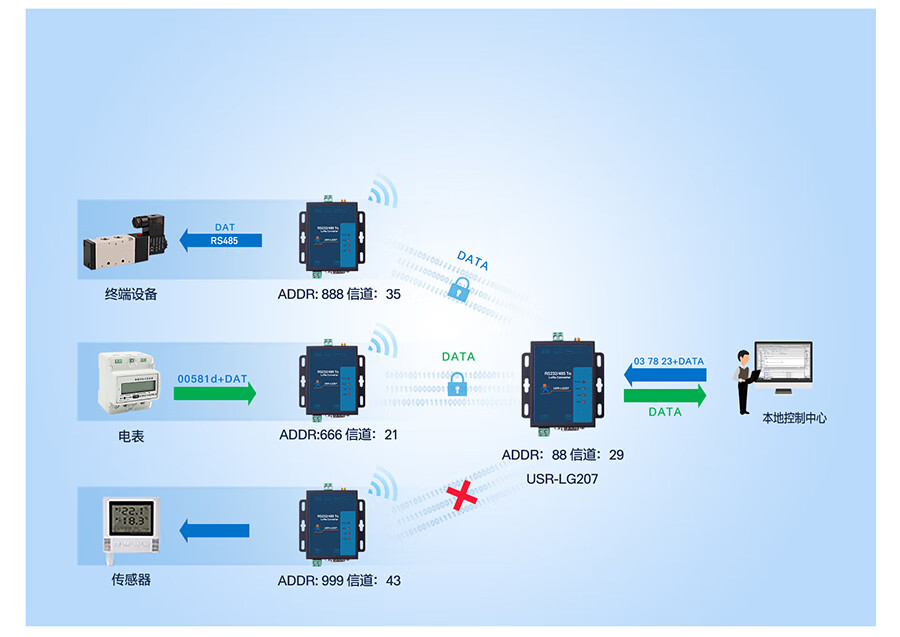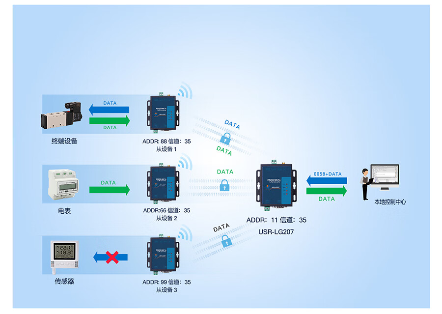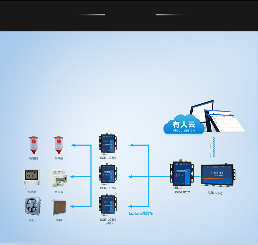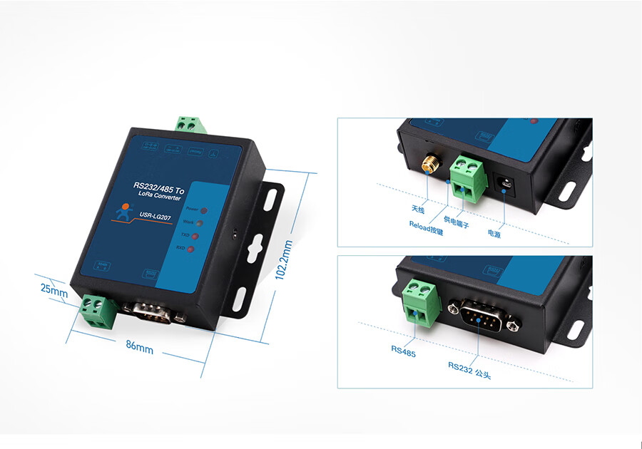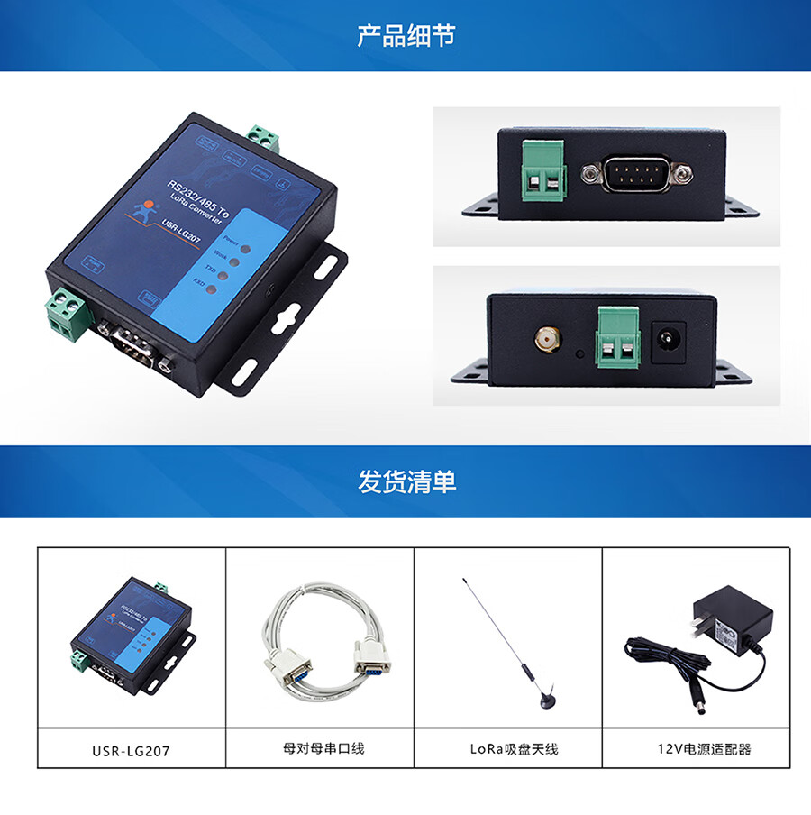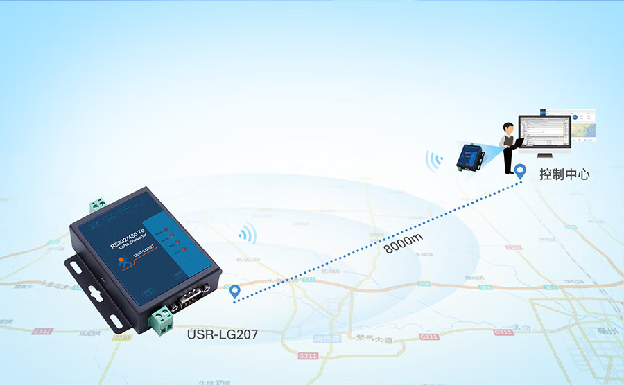 IoT high-power LoRa wireless data transmission terminal serial port point-to-point communication 8000 meters long-distance transmission USR-LG207