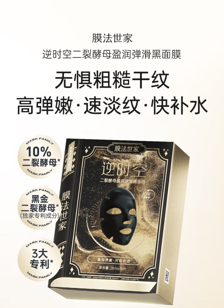 Mask Fa Shijia bifid yeast moisturizing and elastic black mask single piece trial pack, firming, anti-wrinkle, hydrating and brightening