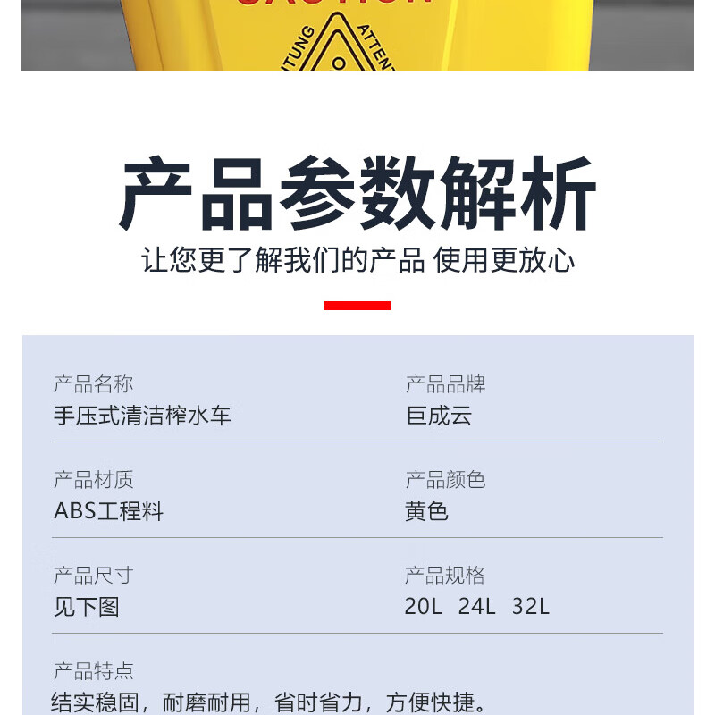 Juchengyun water squeeze truck 32L property hotel mop squeeze bucket commercial mop bucket cleaning wash mop mop tussah water truck cleaning tool thickened