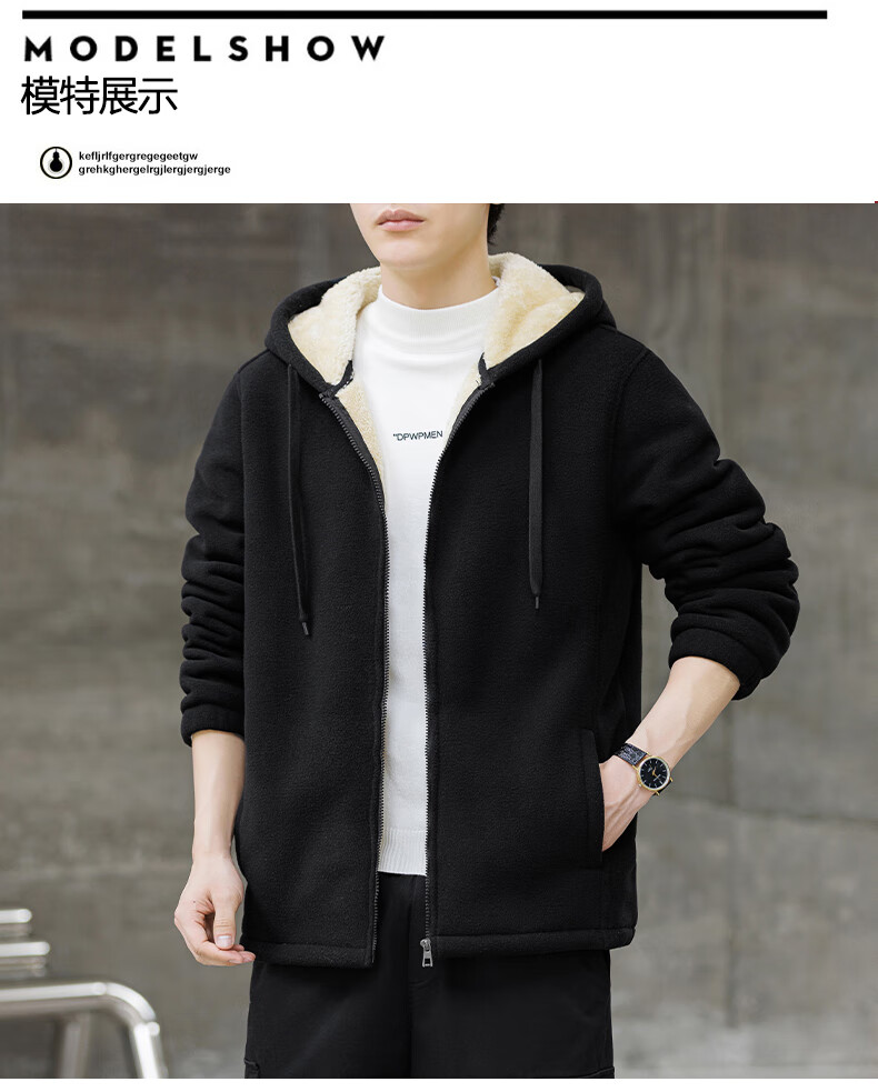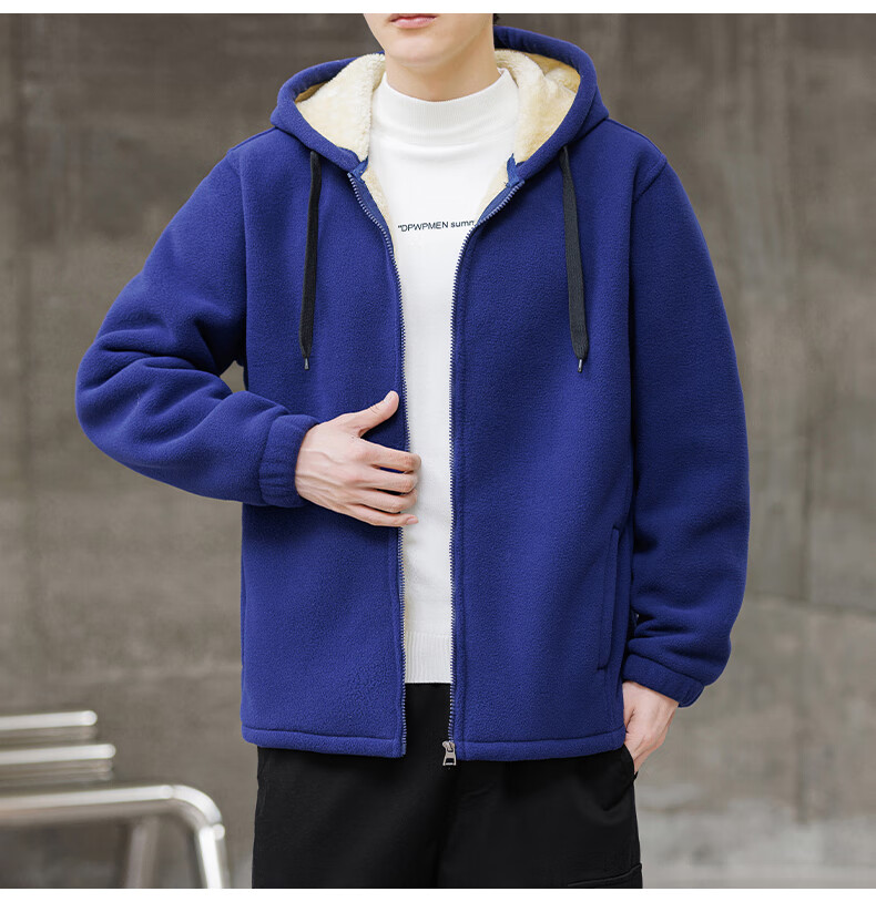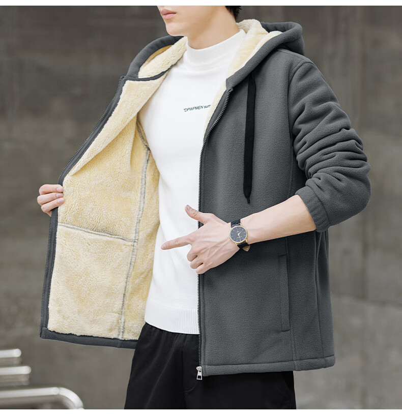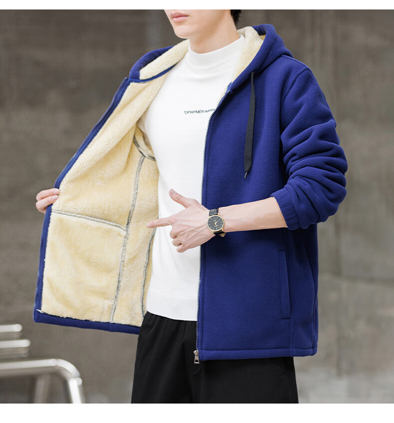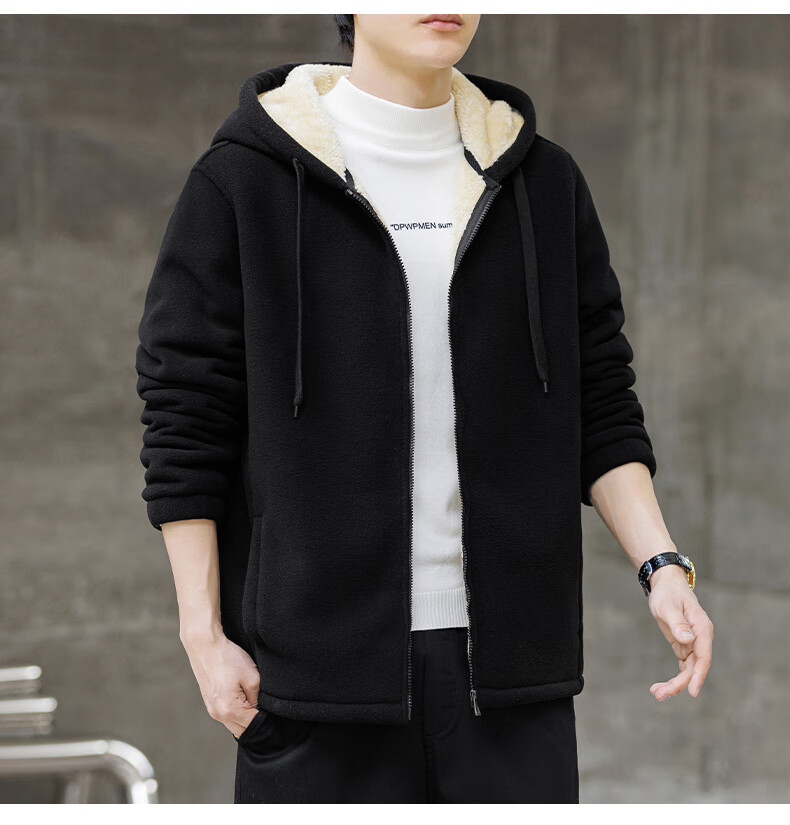Dingfengbaoluo simple jacket men's winter velvet polar fleece warm stand-up collar casual top jacket BY19 black 2XL