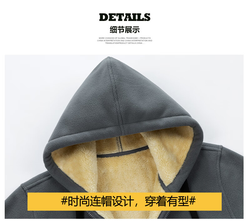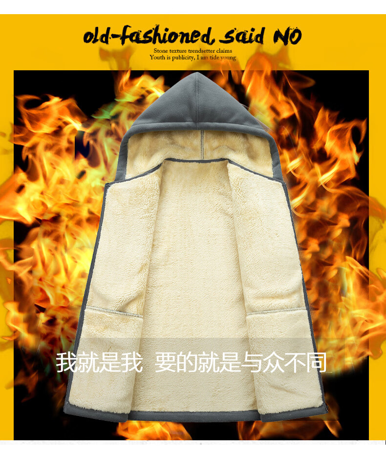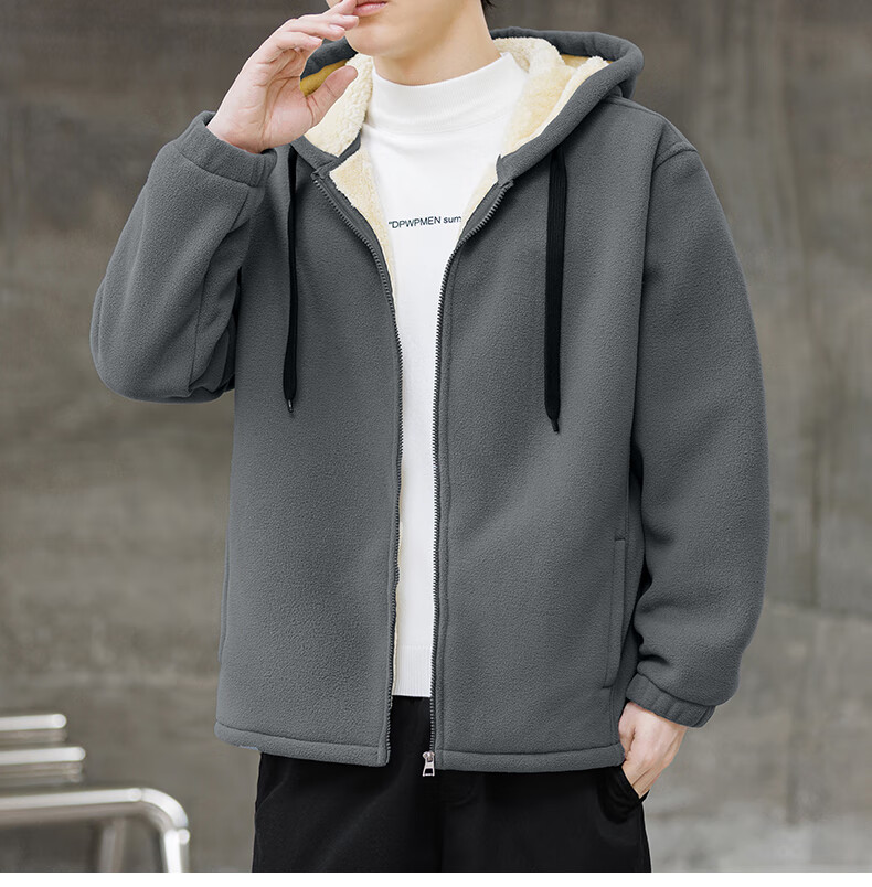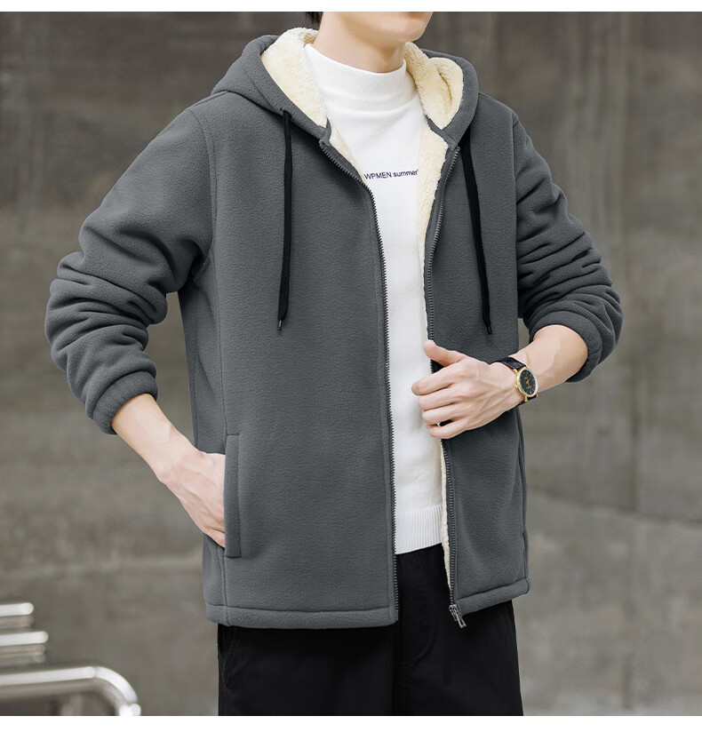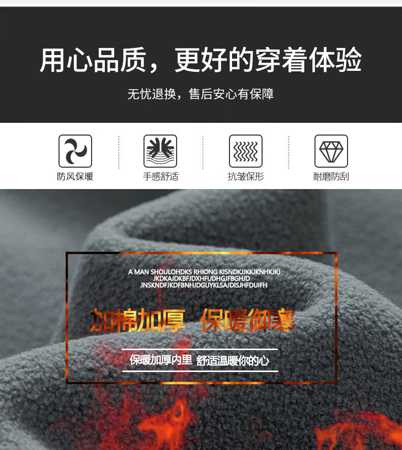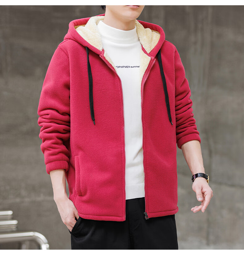 Dingfengbaoluo simple jacket men's winter velvet polar fleece warm stand-up collar casual top jacket BY19 black 2XL