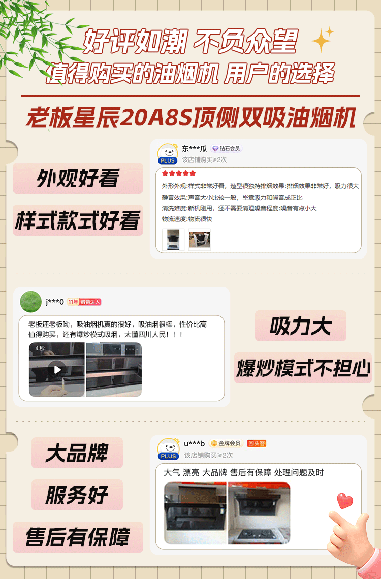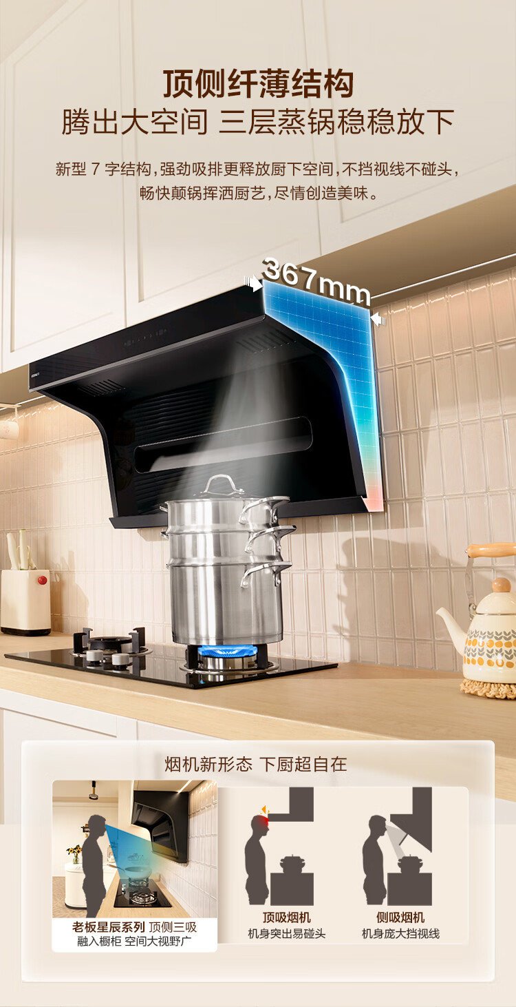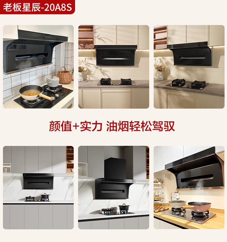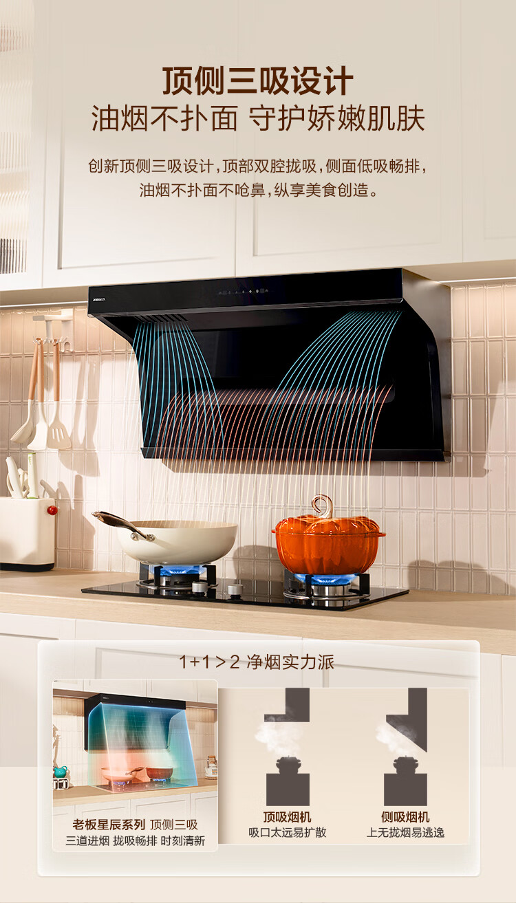 Boss Xiaoheiyi exhaust range hood top side double-suction 7-shaped hood household range hood first-class energy efficiency range hood trade-in range hood set flat embedded 20A8S