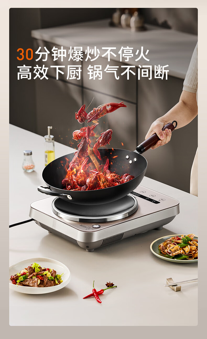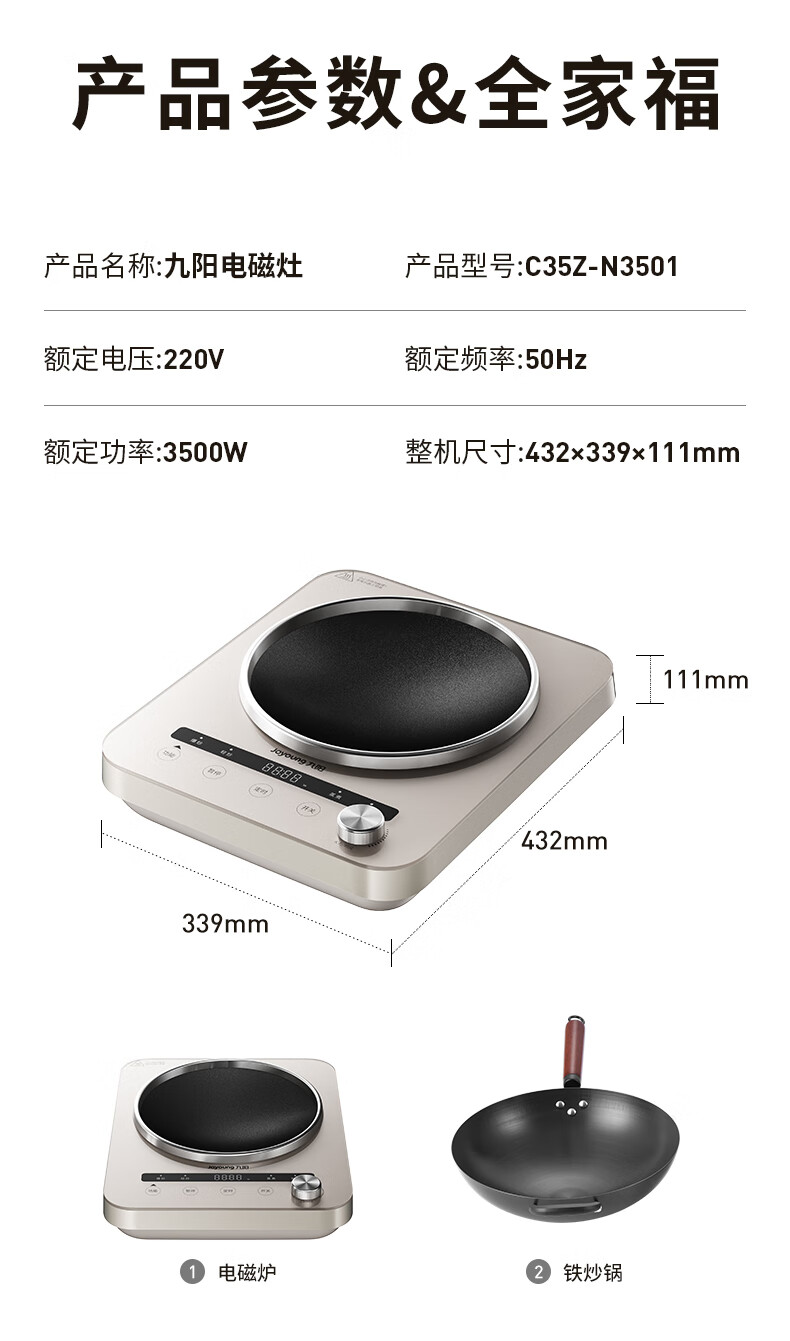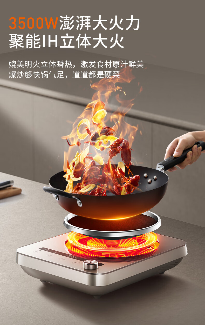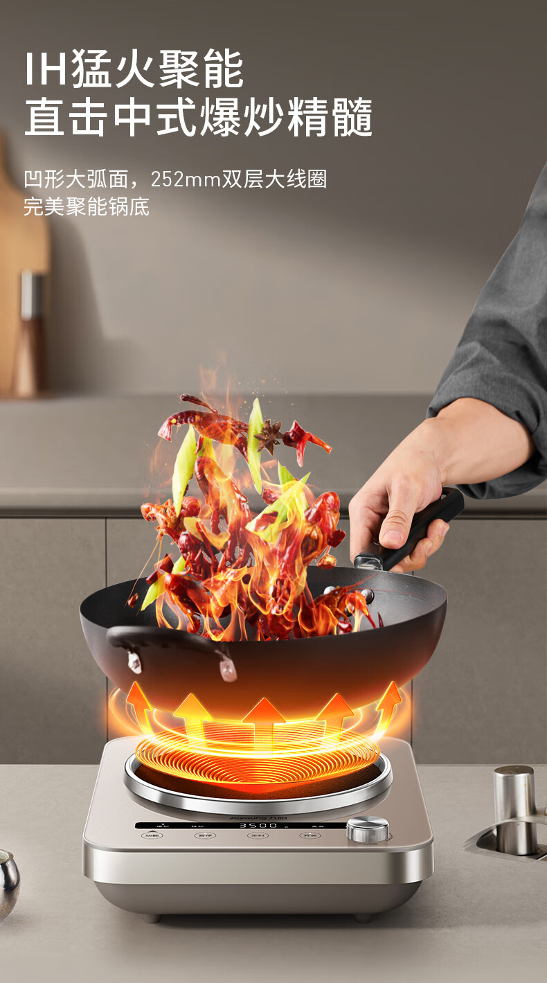 Joyoung induction cooker concave surface induction cooker induction cooker electric ceramic stove household 3500W high-power fierce multi-function battery stove deep concave arc surface concave stove N3501 free special iron pot