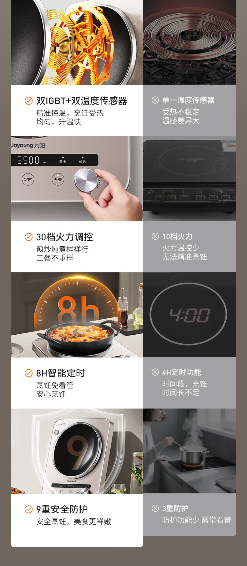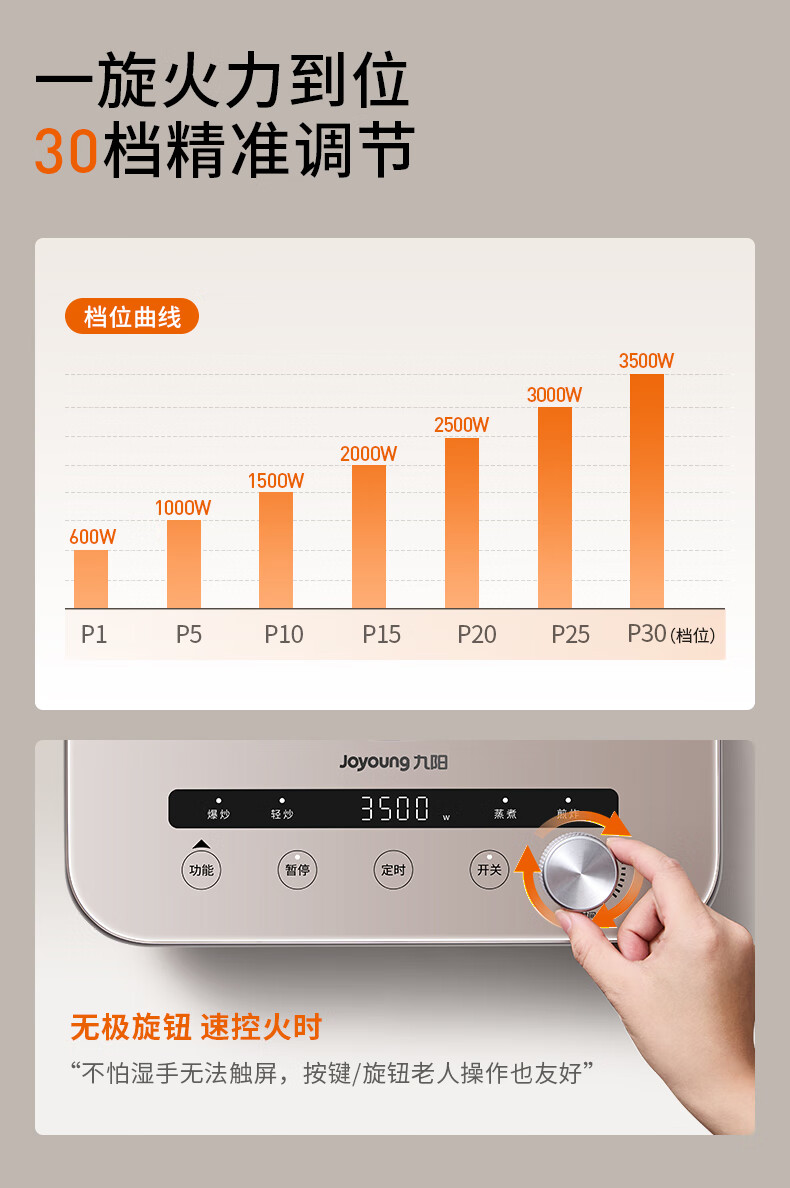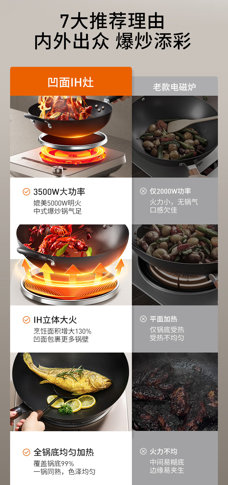 Joyoung induction cooker concave surface induction cooker induction cooker electric ceramic stove household 3500W high-power fierce multi-function battery stove deep concave arc surface concave stove N3501 free special iron pot