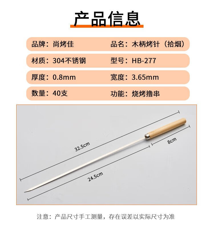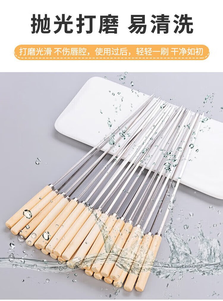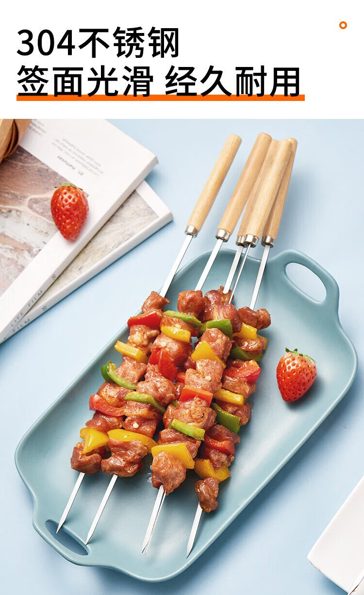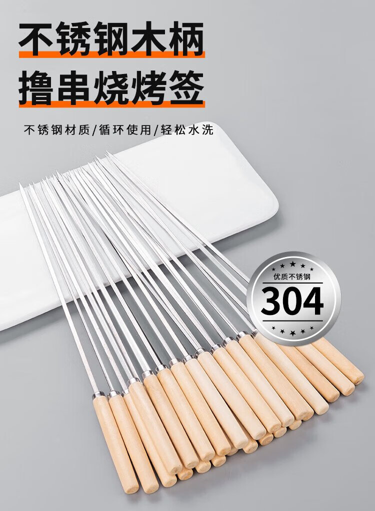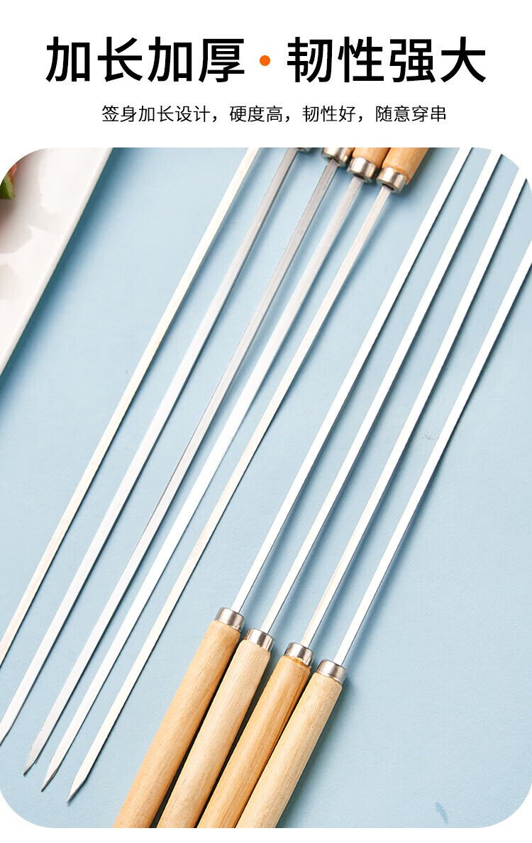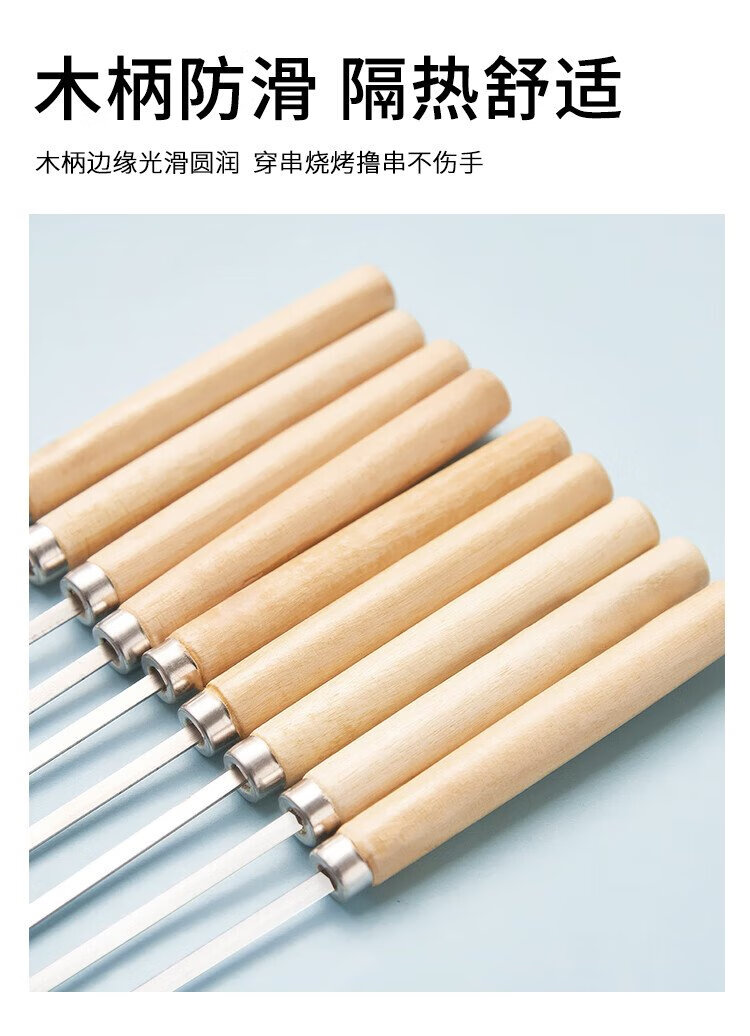 Suncojia barbecue skewers, wooden handle anti-scalding barbecue skewers, grilling needles, mutton skewers, barbecue skewers, 304 stainless steel, 40 pieces
