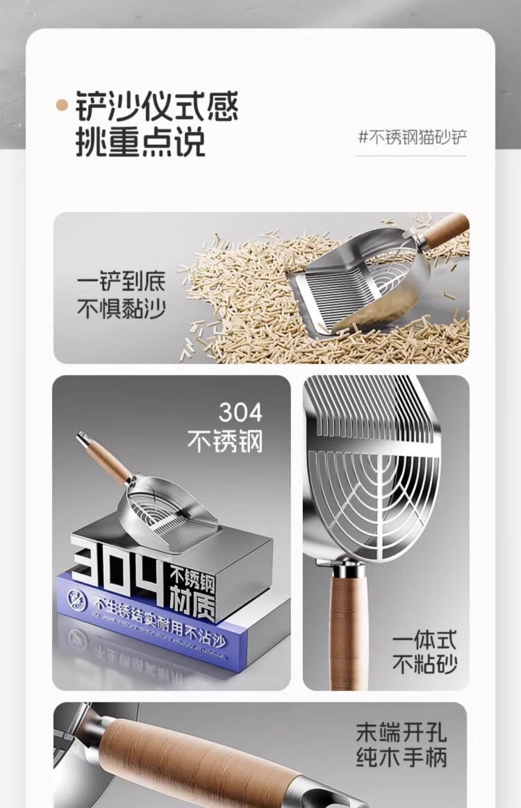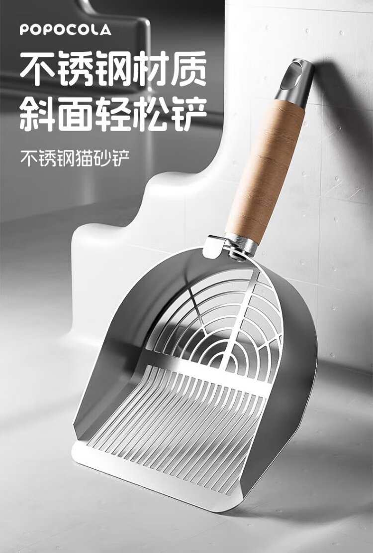 POPOCOLA cat litter shovel stainless steel cat poop shovel large cat litter special mineral sand tofu sand fine hole poop shovel artifact