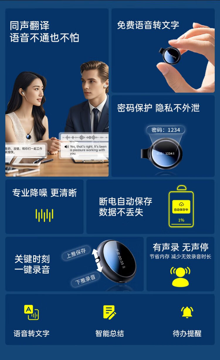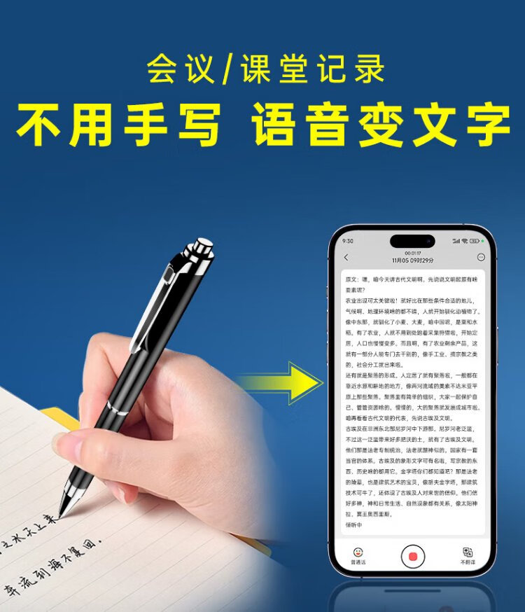 Shinco ai smart recording pen RV20 portable small button 32G recording to text intelligent noise reduction real-time translation recording artifact portable professional recording equipment recording