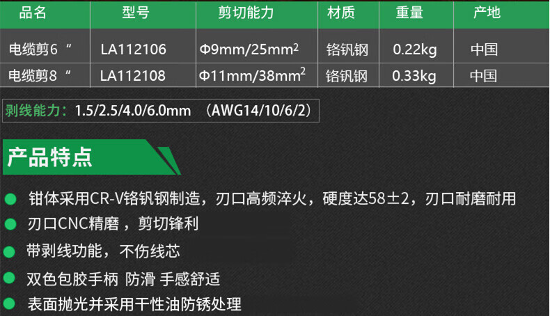 LAOA old A cable cutter and stripper, cable breaking and stripping cutter 8 inches LA112108