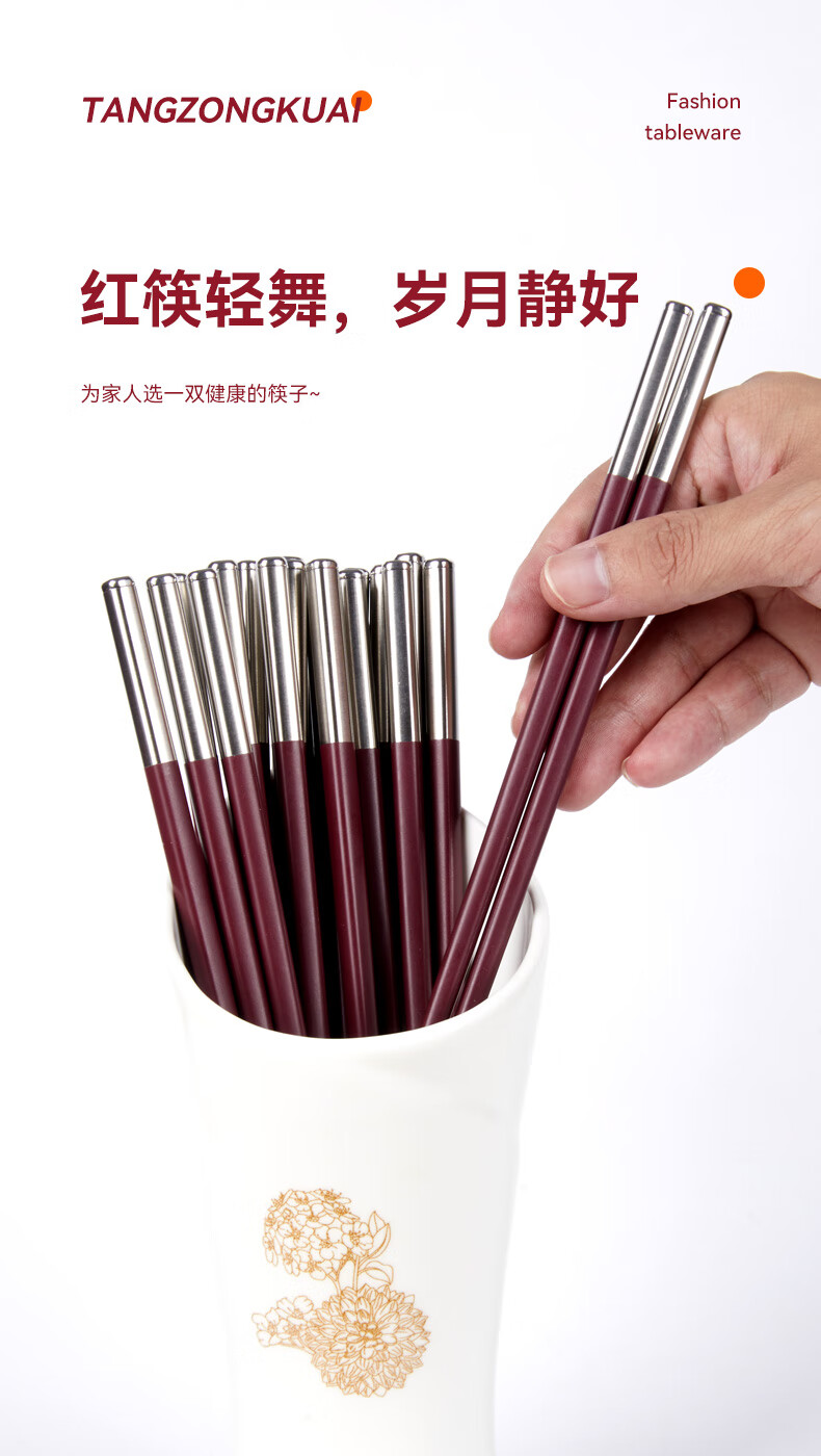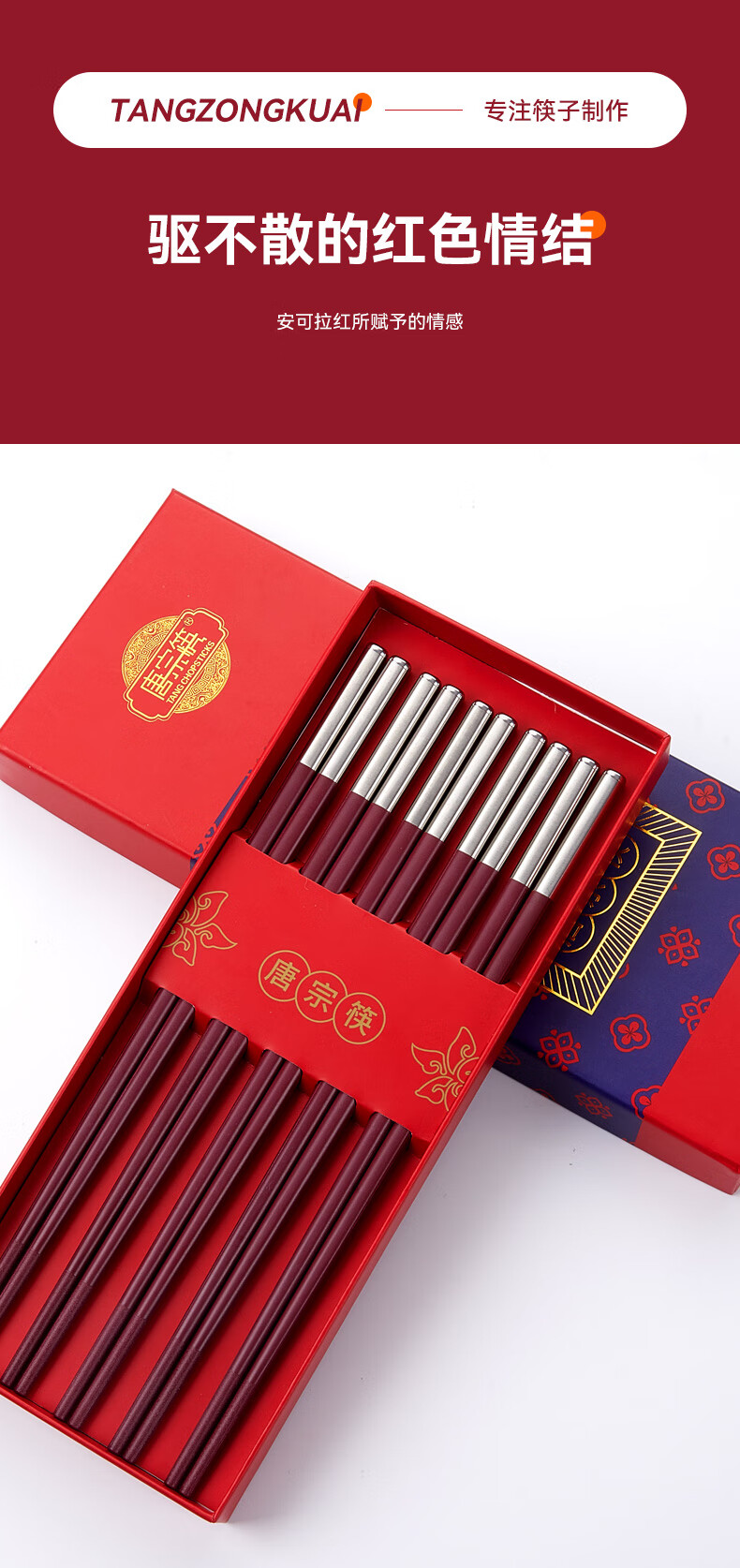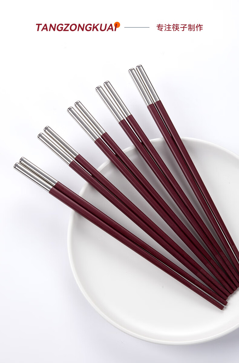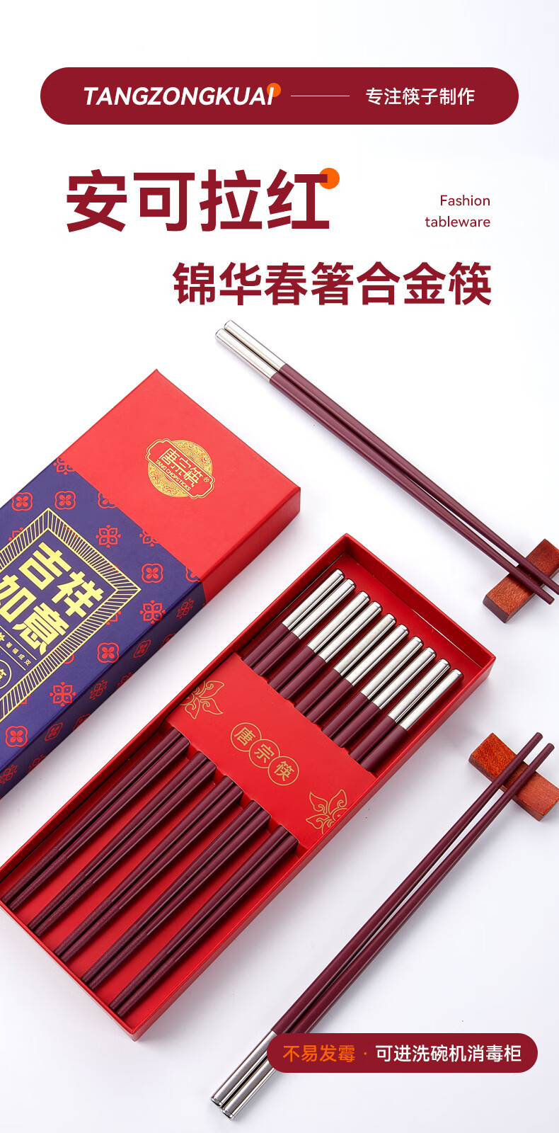Tang Zong Chopsticks Alloy Chopsticks 10 Pairs Ancora Red High Temperature Resistant Household High-end Tableware Gift Box C2654