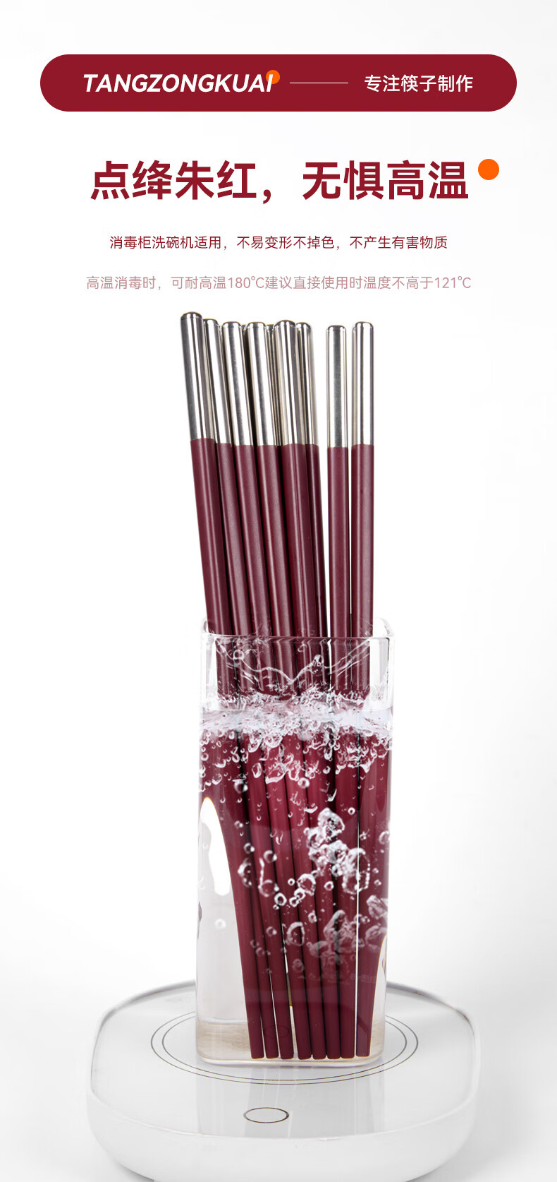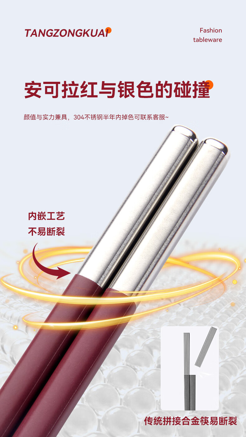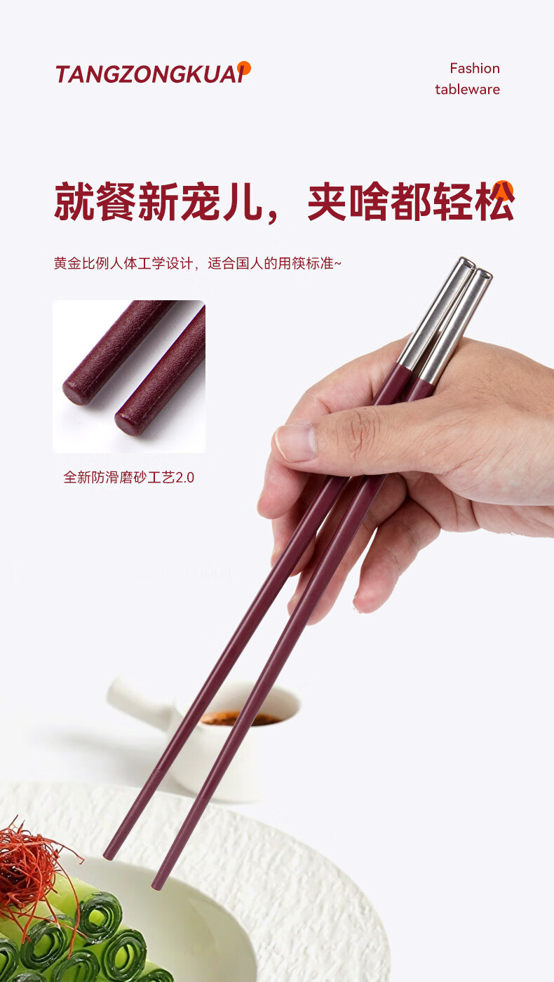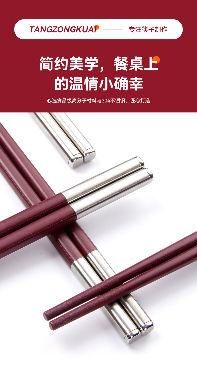 Tang Zong Chopsticks Alloy Chopsticks 10 Pairs Ancora Red High Temperature Resistant Household High-end Tableware Gift Box C2654