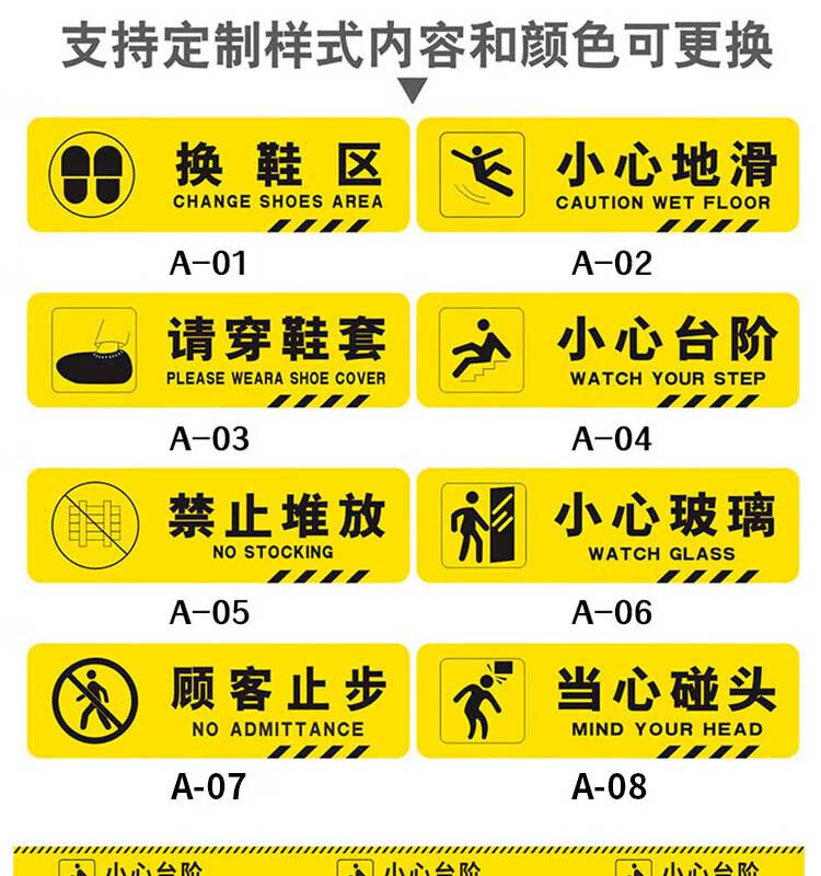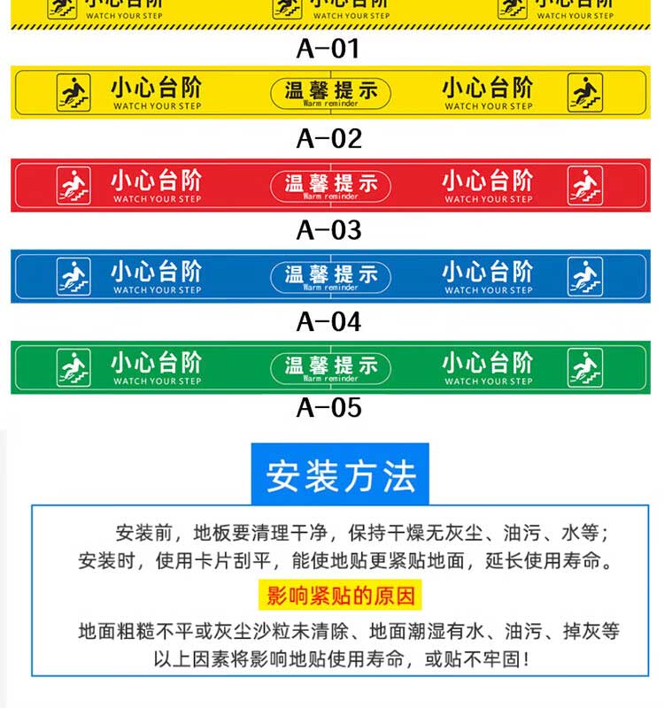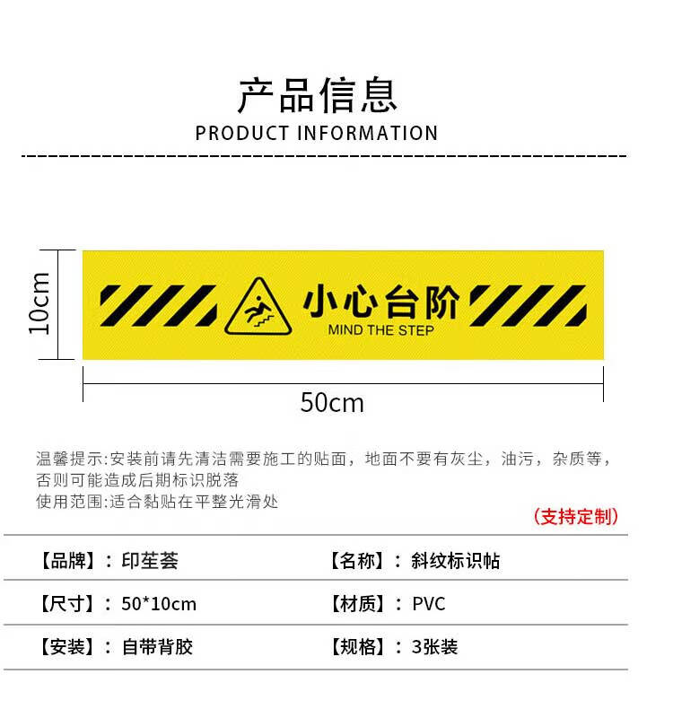 Yinchuanhui Beware of steps, slippery floor, warm reminder signs, pay attention to safety warning signs under your feet, 3 pieces of 50*10cm