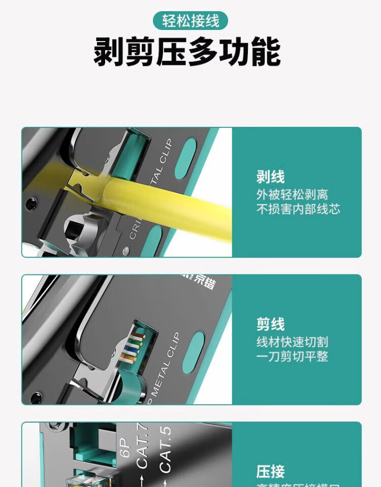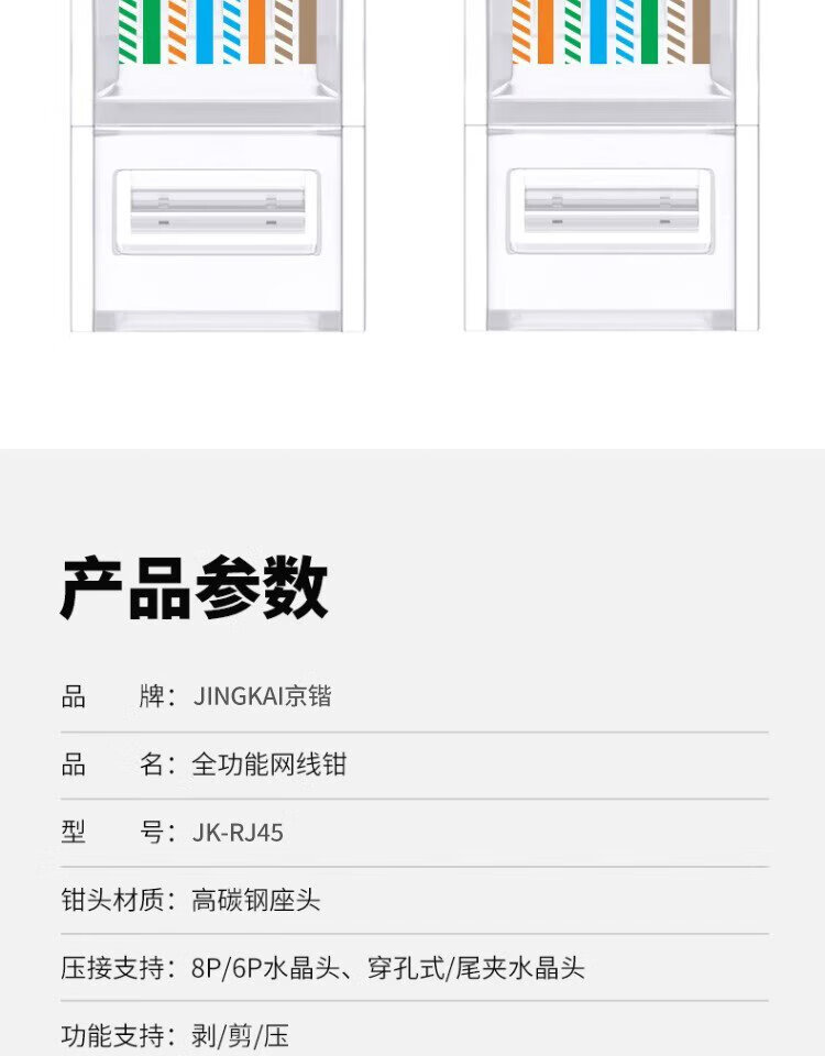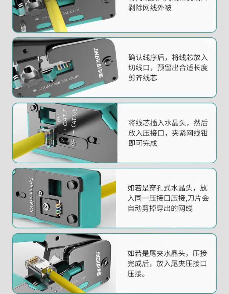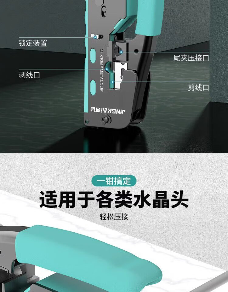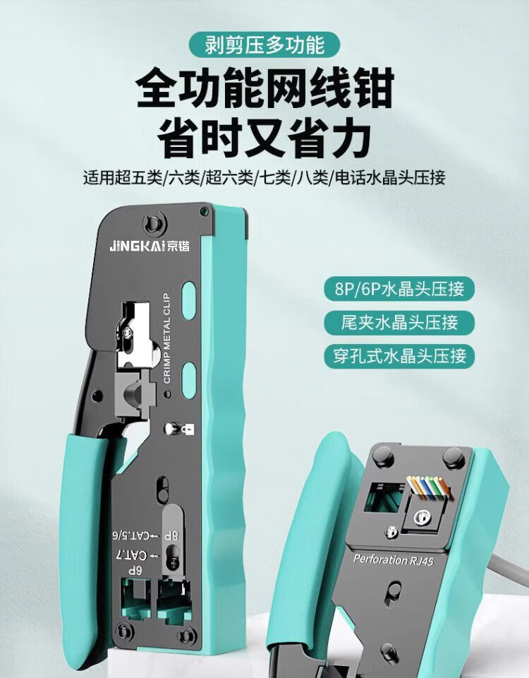 Jingkai multifunctional network cable pliers network telephone line crystal head wire stripping and crimping pliers Category 6 Category 7 with dovetail clamp through hole