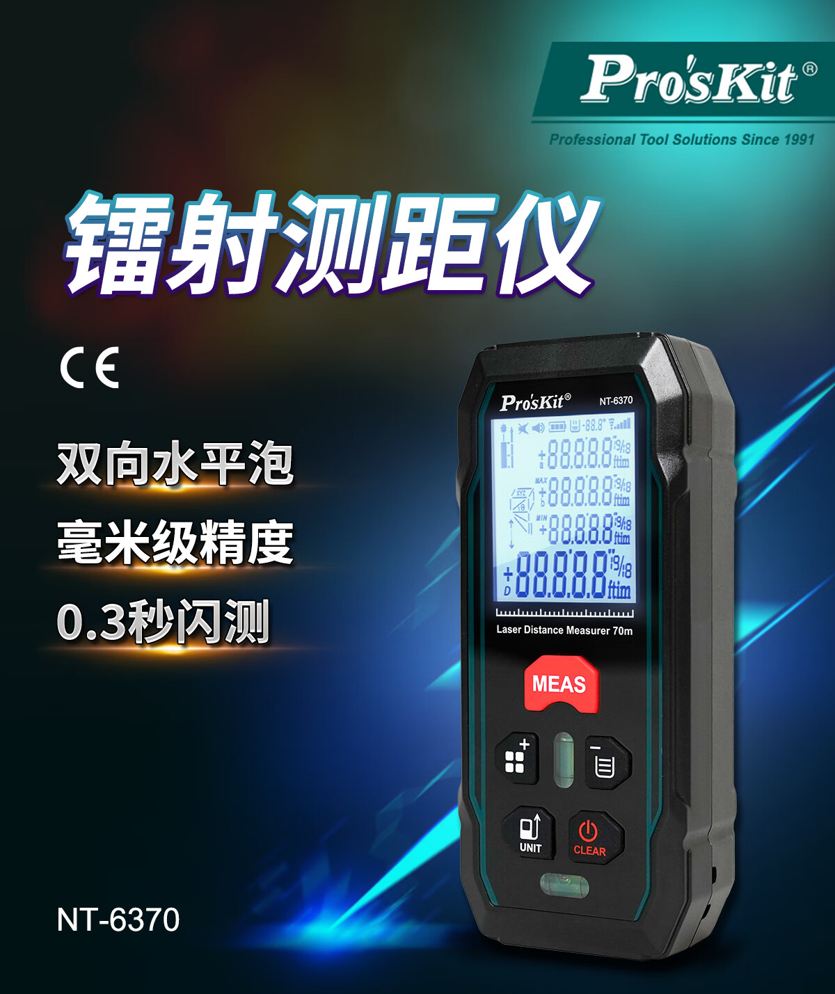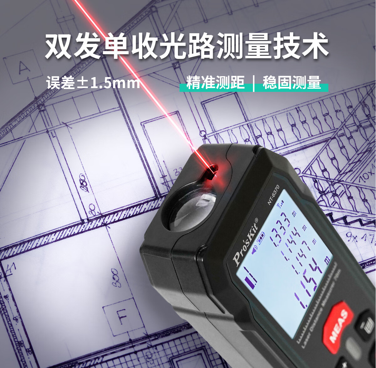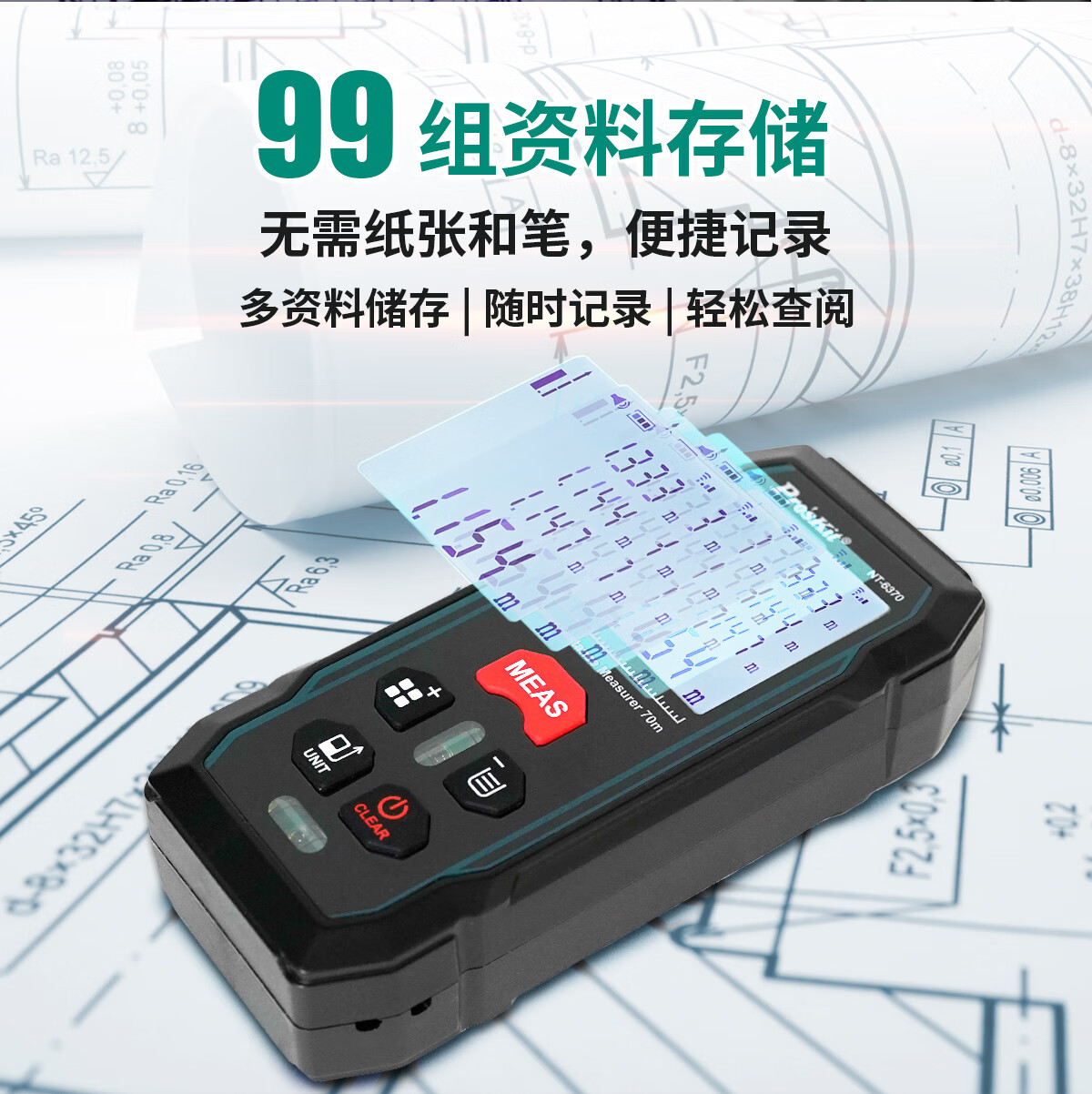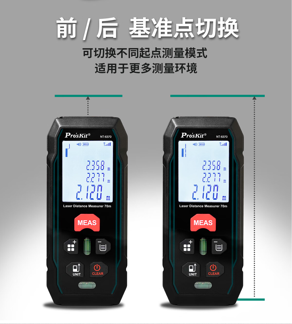 Baogong (Pro sKit) NT-6370 laser rangefinder high-precision handheld infrared room measuring tool 70-meter dual universal level bubble