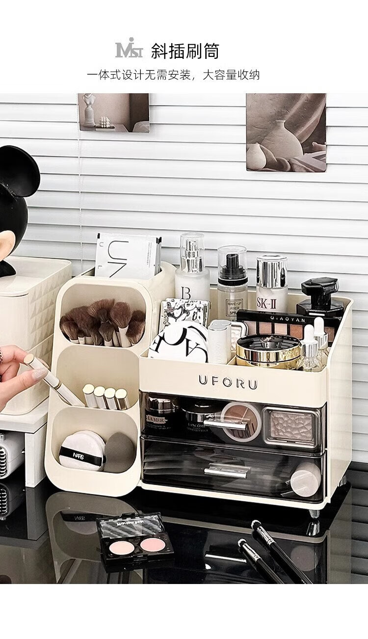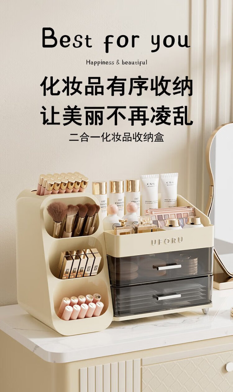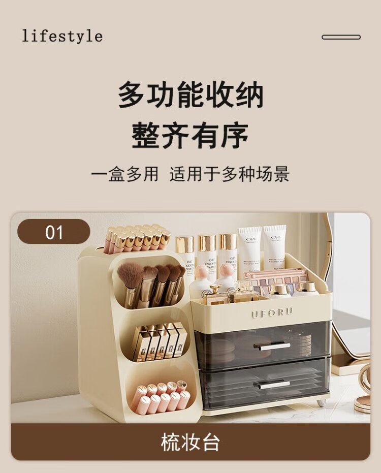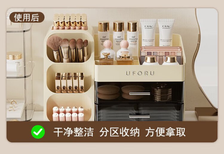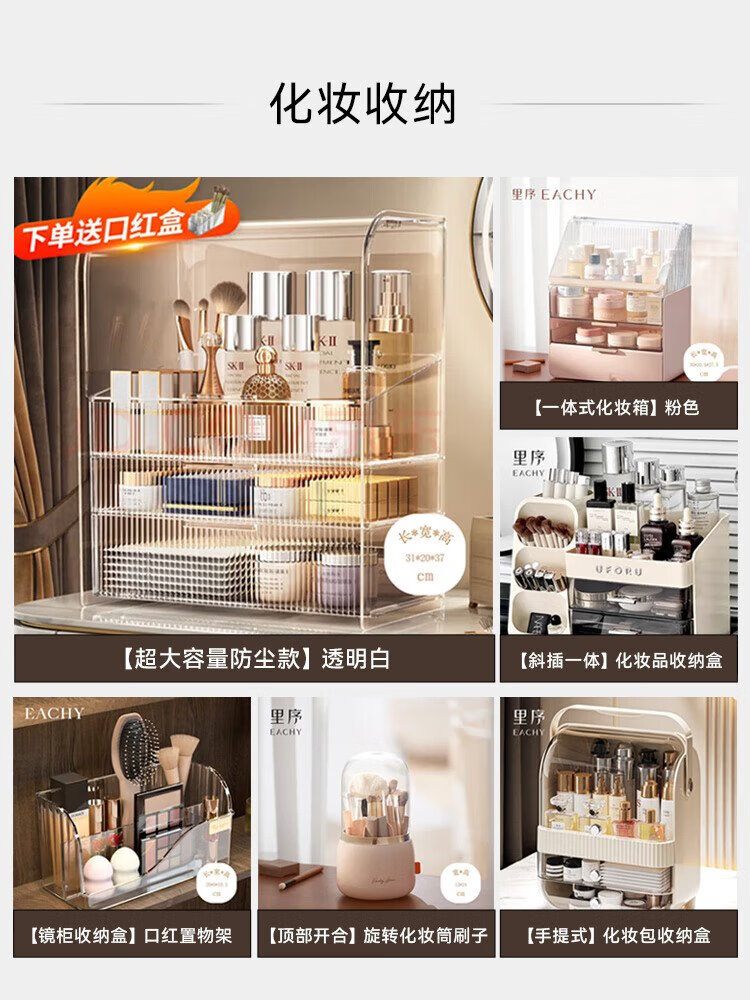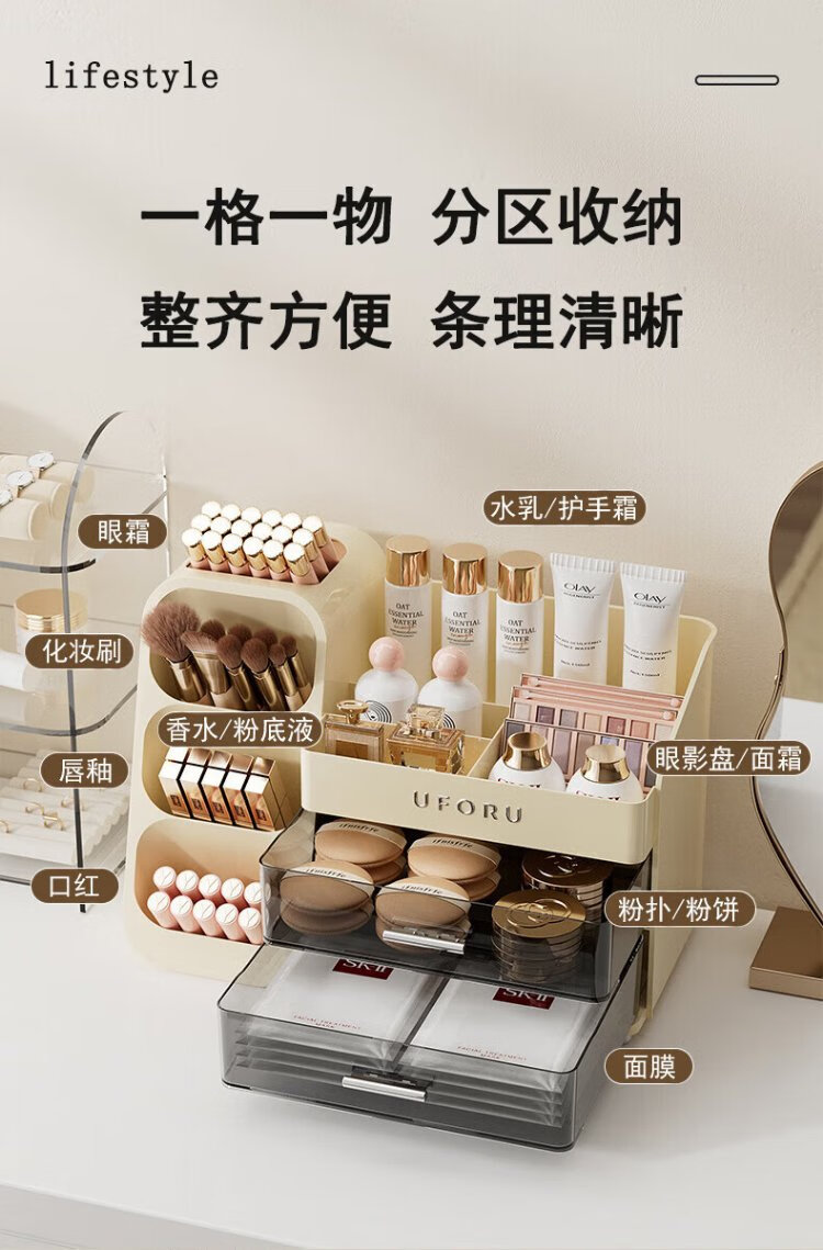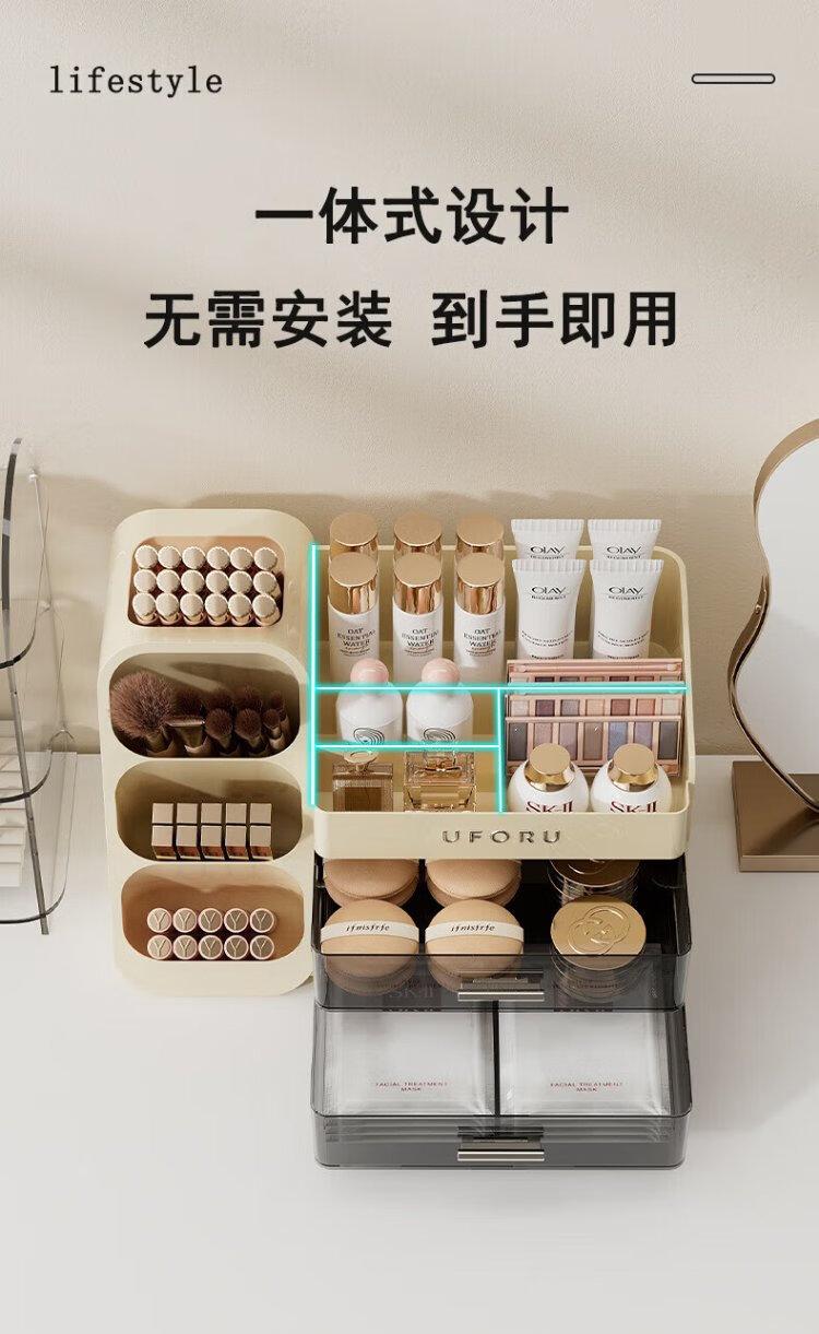 EACHY cosmetics storage box desktop dust-proof high-end large-capacity dressing table skin care product storage rack-cream yellow