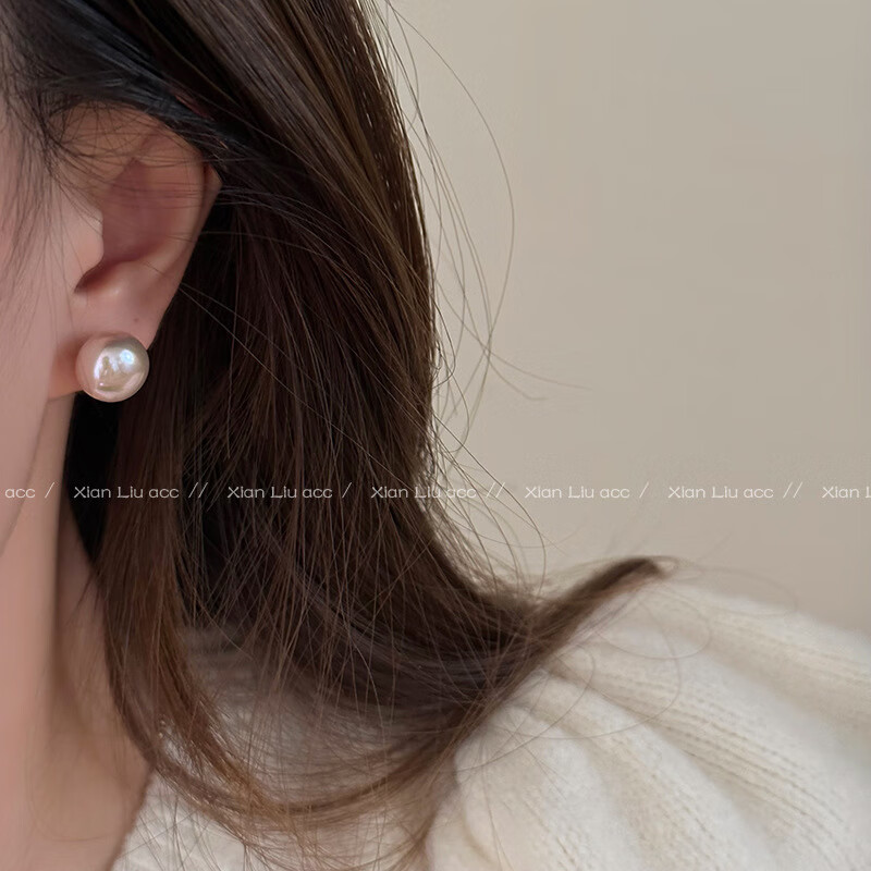 GECOMO 925 Silver Steamed Bun Pearl Earrings New Year's Gift Popular Light Luxury High-Quality Earrings Feminine Ear Hole Earrings