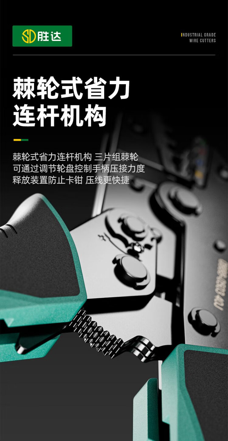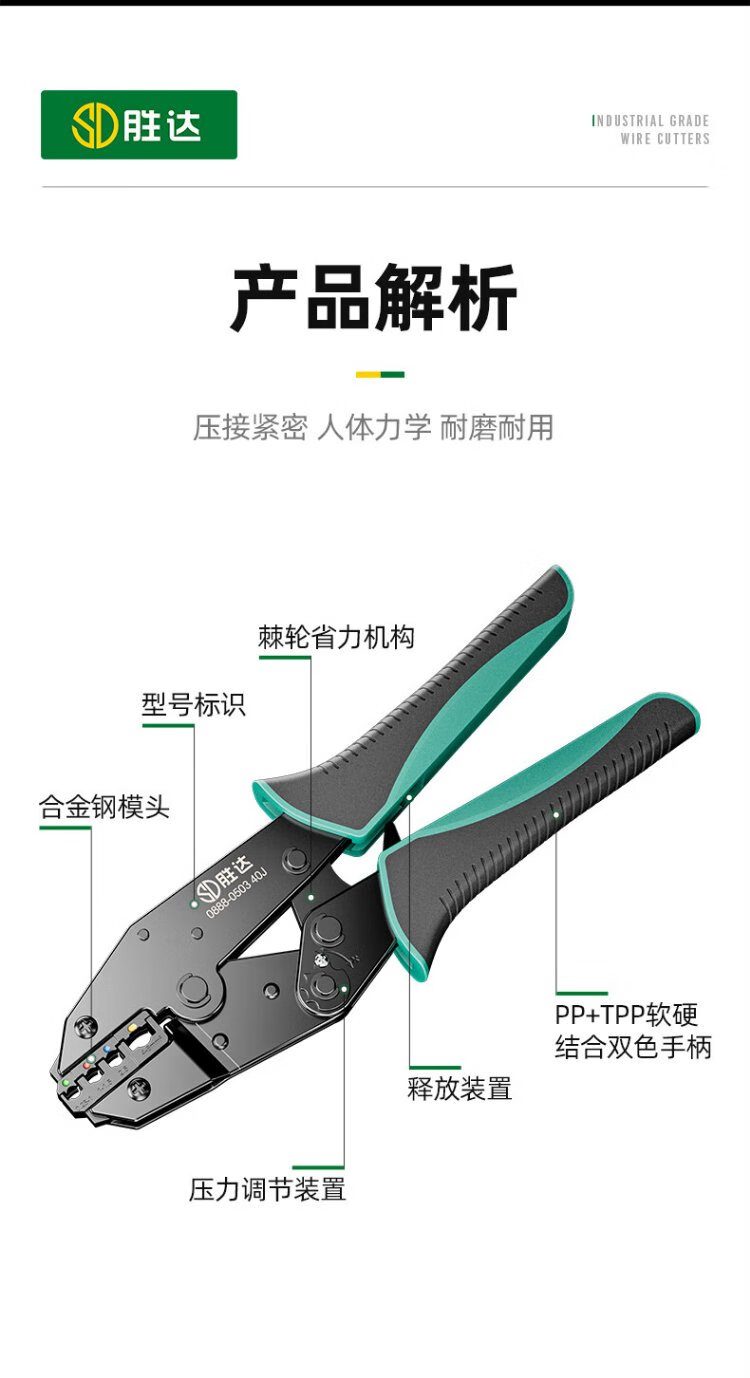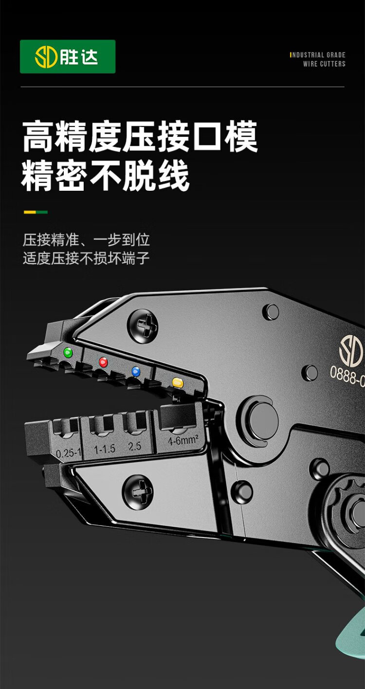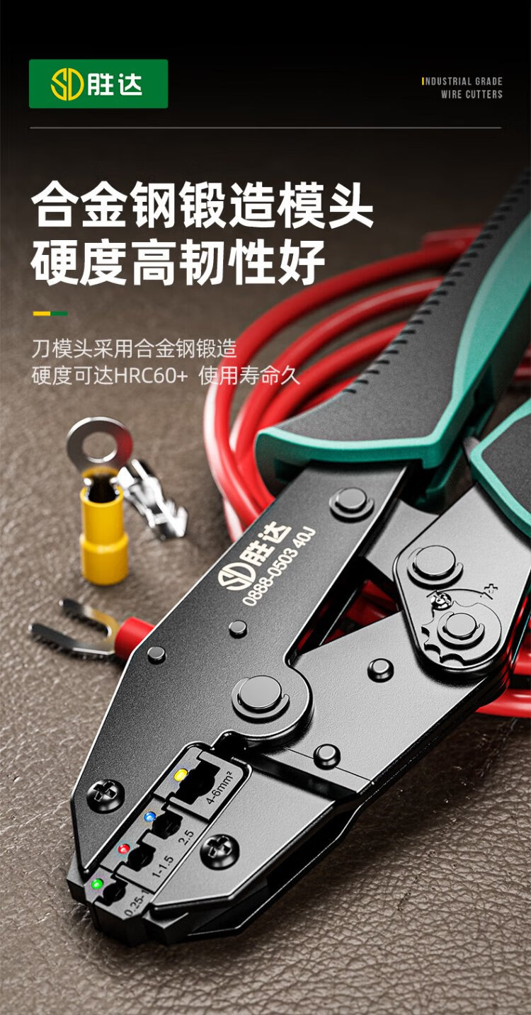 Shengda ratchet labor-saving crimping pliers cold-pressed terminal pliers wiring pre-insulated terminal crimping pliers 40J (0.25-6mm)
