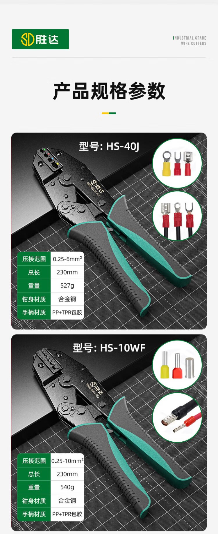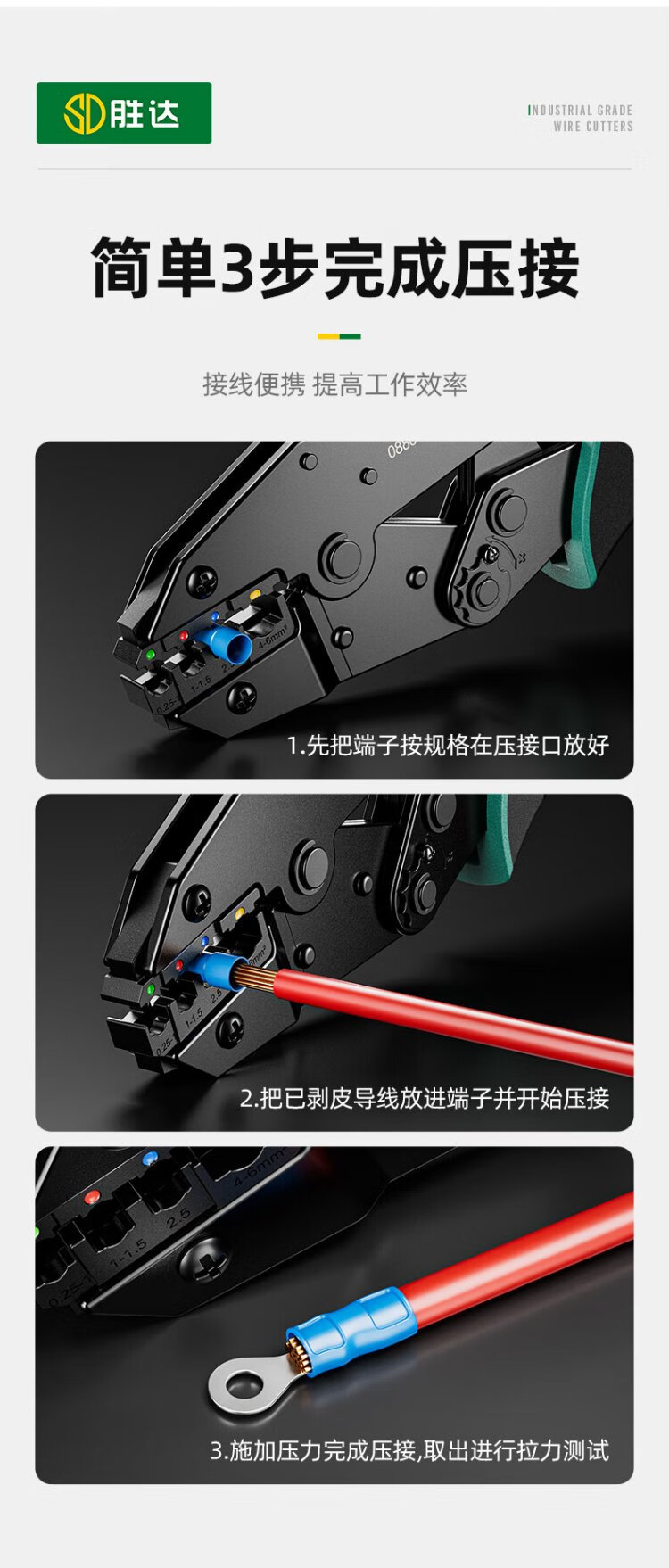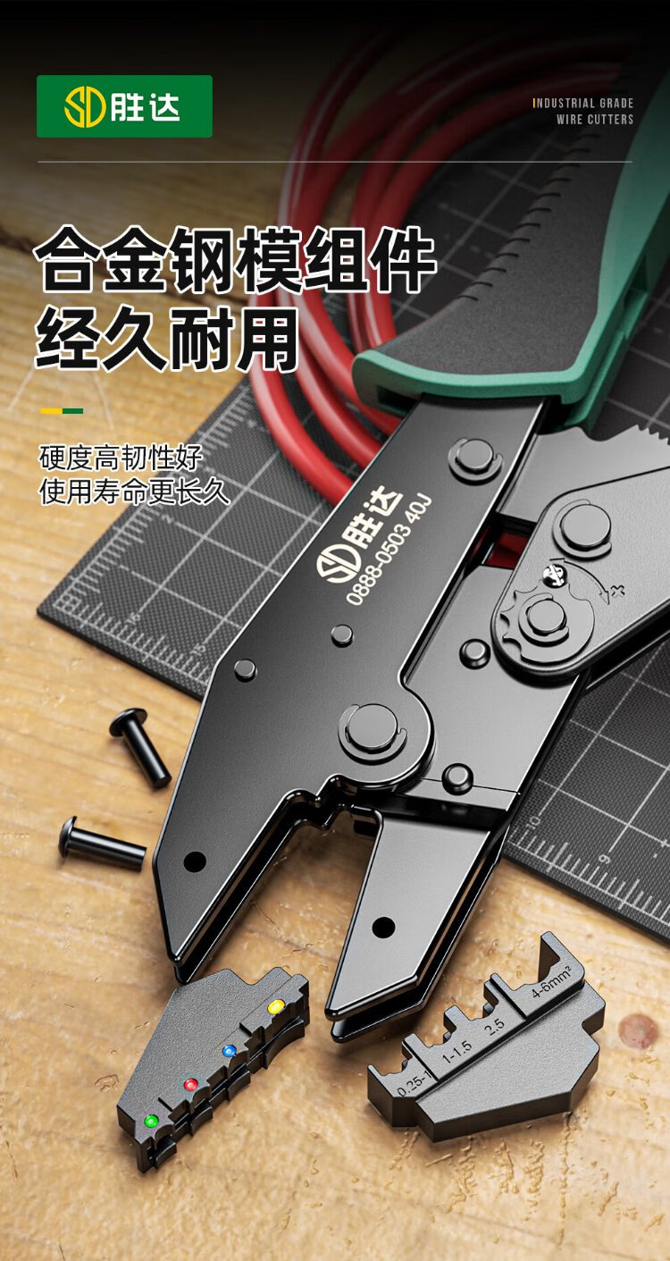 Shengda ratchet labor-saving crimping pliers cold-pressed terminal pliers wiring pre-insulated terminal crimping pliers 40J (0.25-6mm)