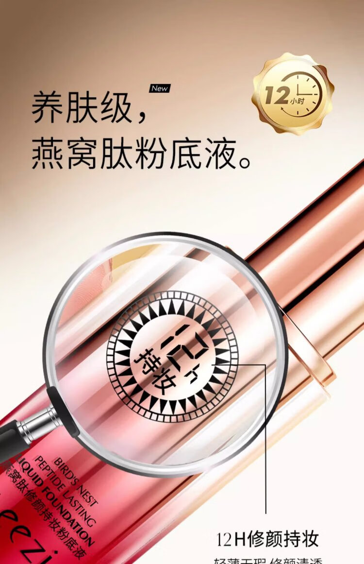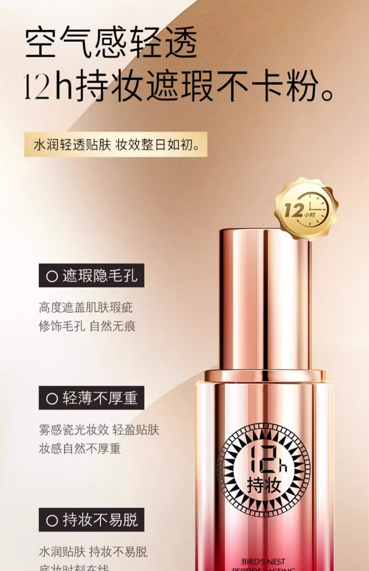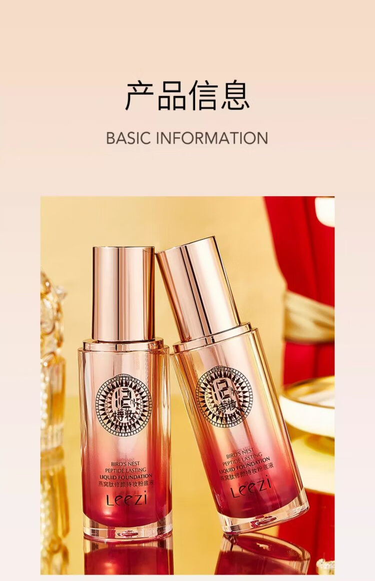 Leezi Bird's Nest Peptide Repairing Long-lasting Makeup Liquid Foundation Concealer Not Easy to Remove Makeup for Dry Oily Skin Natural Color Chinese Valentine's Day Christmas Gift for Friends