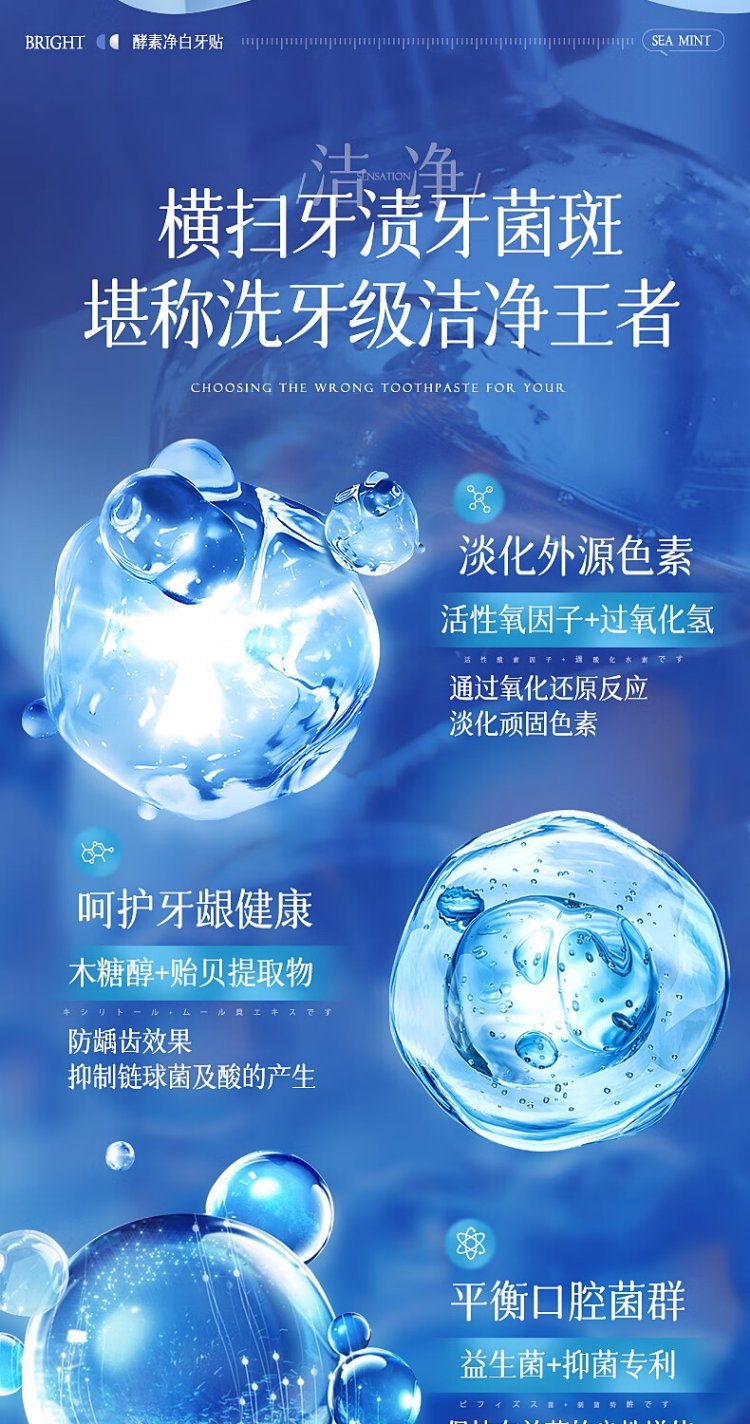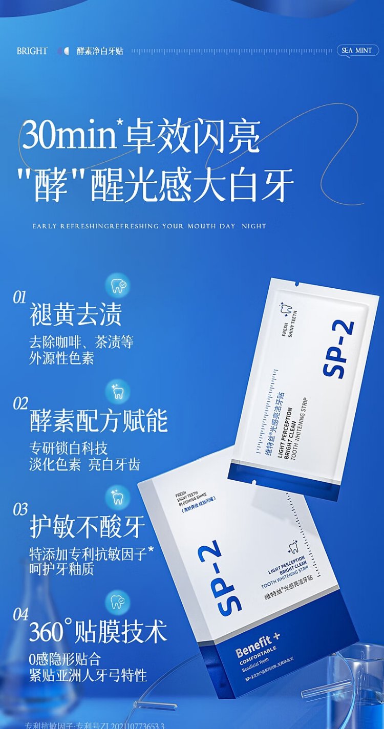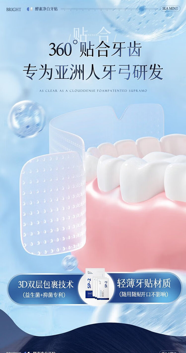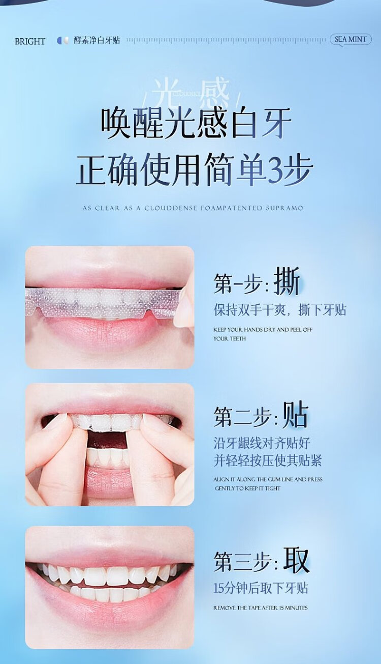 Vitus Brightening White Teeth Patch dazzles white teeth, removes yellow stains, freshens breath, oral odor, mild and non-acid teeth grinding patch