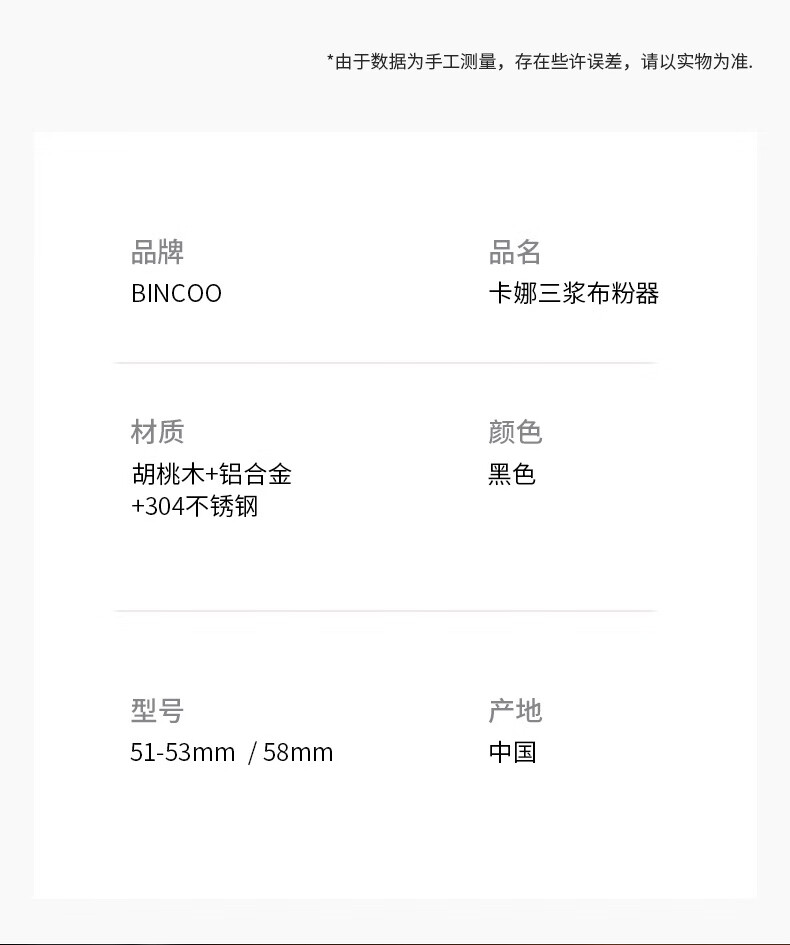 Bincoo Kanna three-pulp powder machine espresso machine 51/58mm matching equipment powder hammer