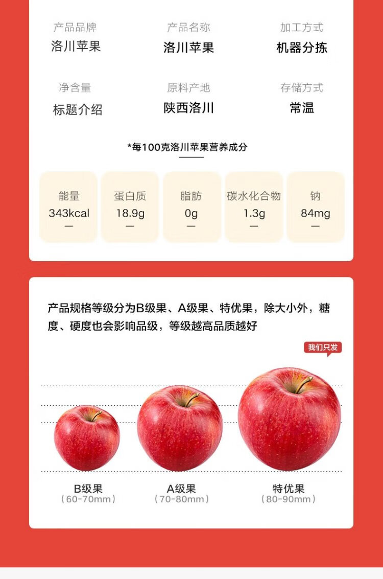 Jingmi Luochuan Apple Red Fuji Fresh Fruit New Fruit Gift Box Net Weight 4.6 Jin Single Fruit 170g Origin Head Straight Hair