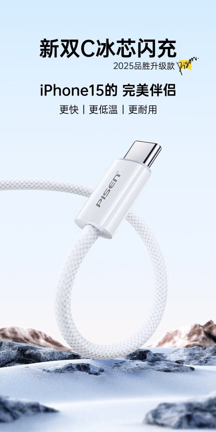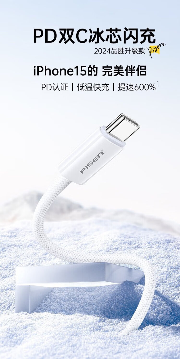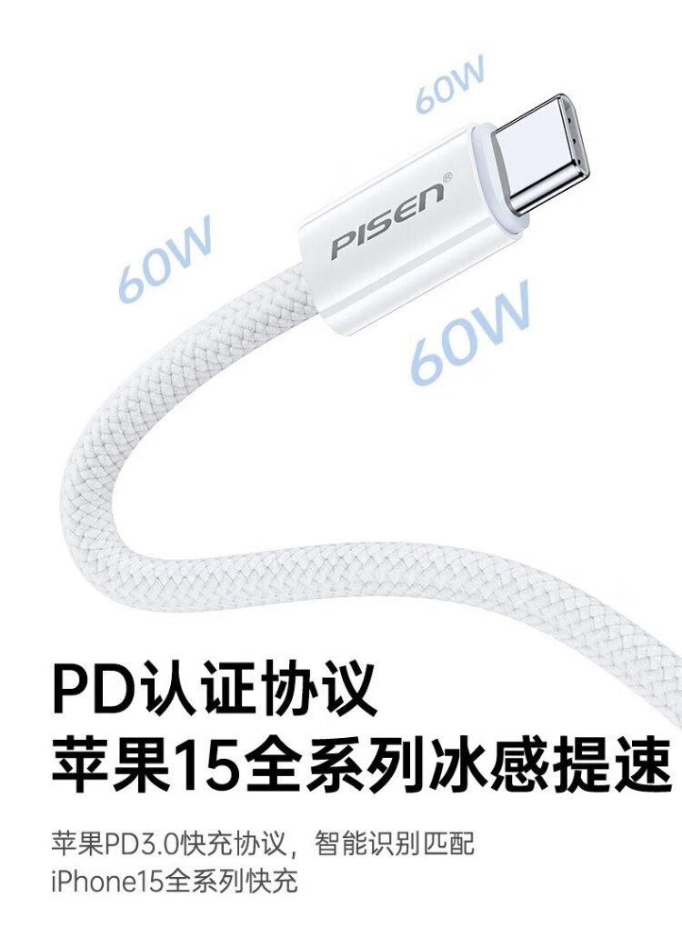 Pinsheng Apple 16 charging cable iPhone16/15promax fast charging cable PD60Wtype-c data cable double-ended 60W mobile phone car suitable for Huawei iPad Lenovo notebook