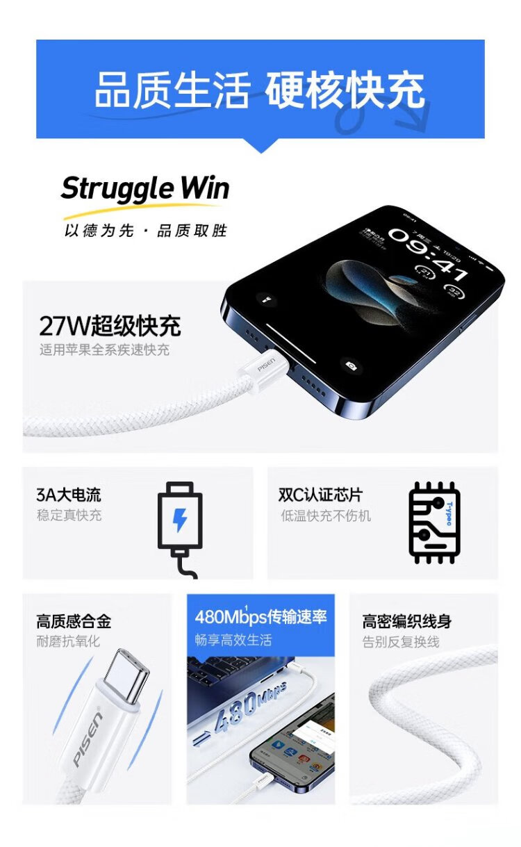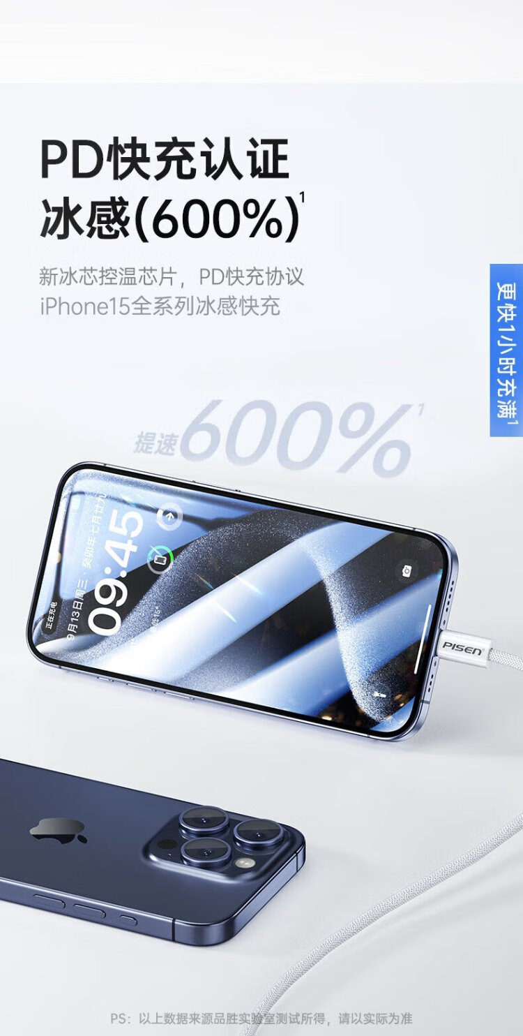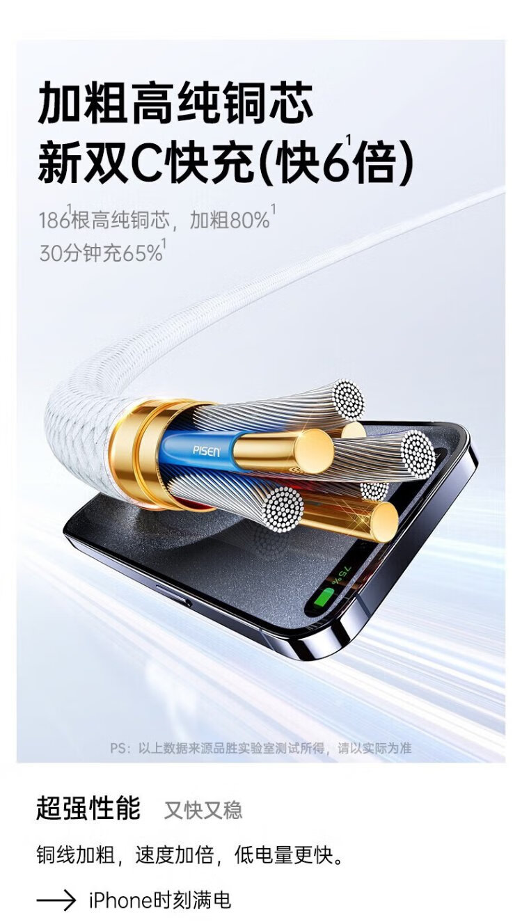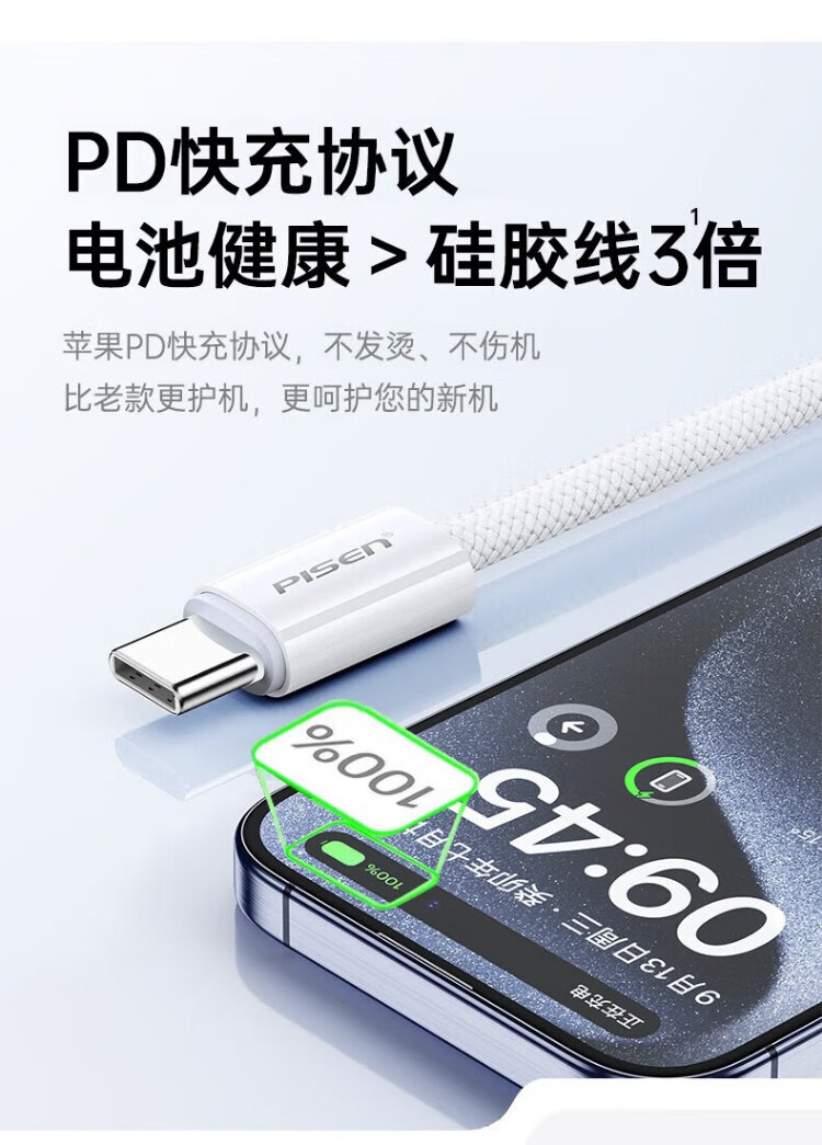 Pinsheng Apple 16 charging cable iPhone16/15promax fast charging cable PD60Wtype-c data cable double-ended 60W mobile phone car suitable for Huawei iPad Lenovo notebook