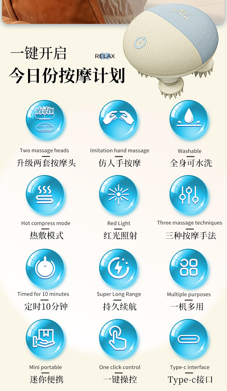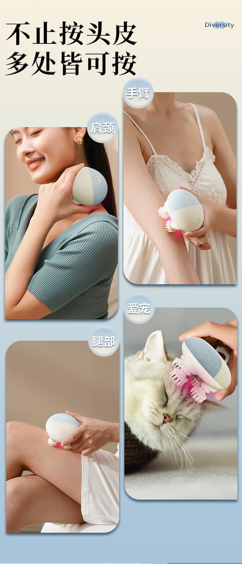 Hezheng head massager can be used as a hot compress on the face. Cat paw electric heating massage comb is waterproof and washable. A scratching massager is a birthday gift for parents and a New Year gift for girlfriend.