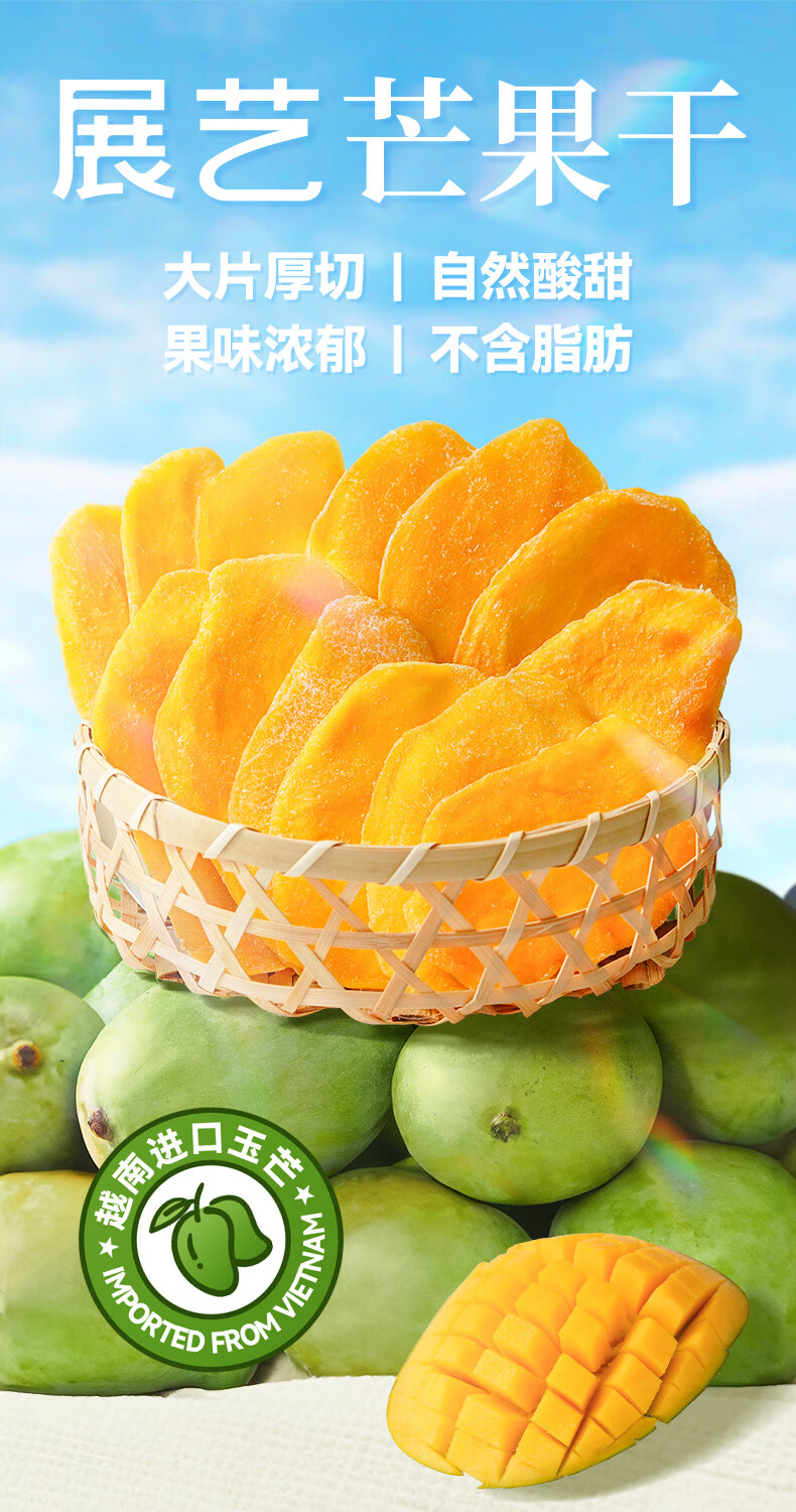 Zhanyi Dried Mango 200g Large Thick-cut Dried Fruit Candied Milk Cake Snow Flakes Preserved Fruit Dried Fruit Chips Snacks Snacks Baked