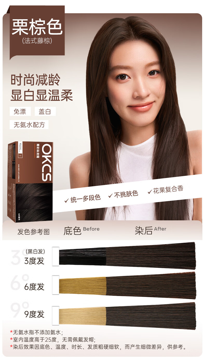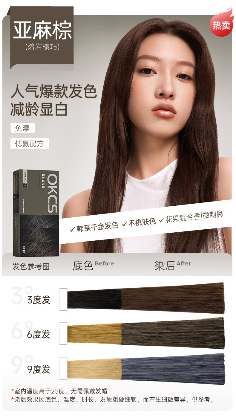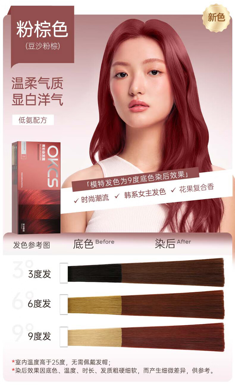OKCS hair dye cream pink brown hair dye plant pure trendy color bleach-free hair dye at home bean paste pink brown medium hair style