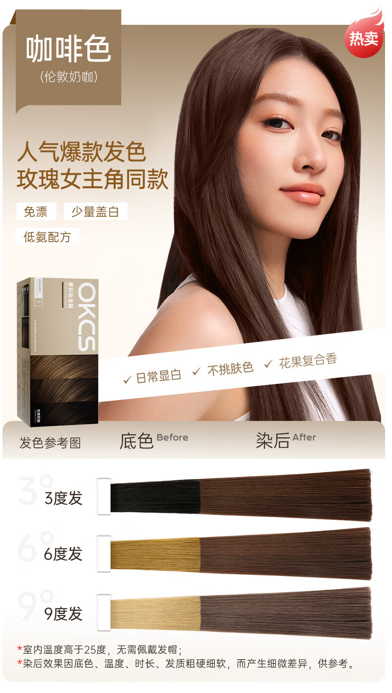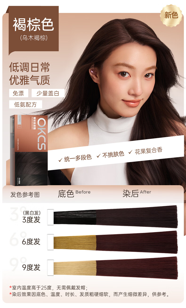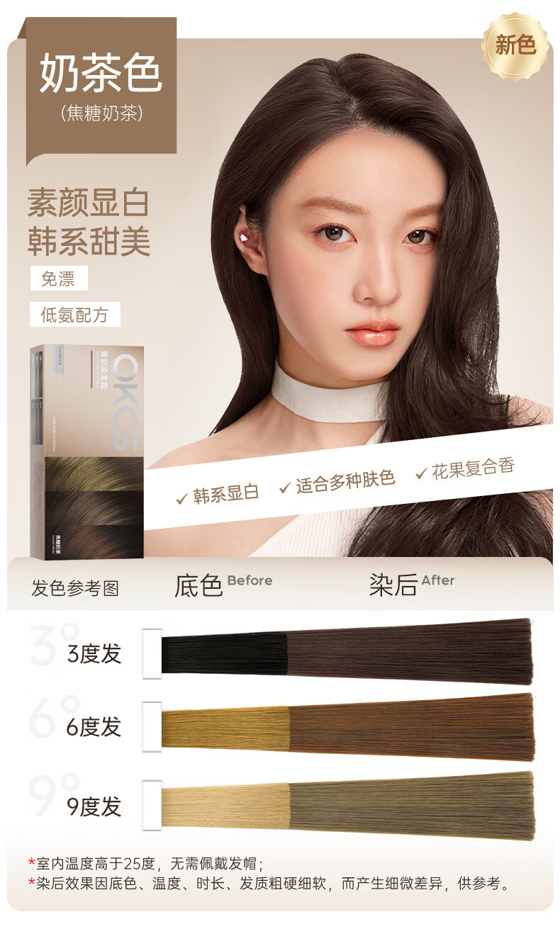 OKCS hair dye cream pink brown hair dye plant pure trendy color bleach-free hair dye at home bean paste pink brown medium hair style